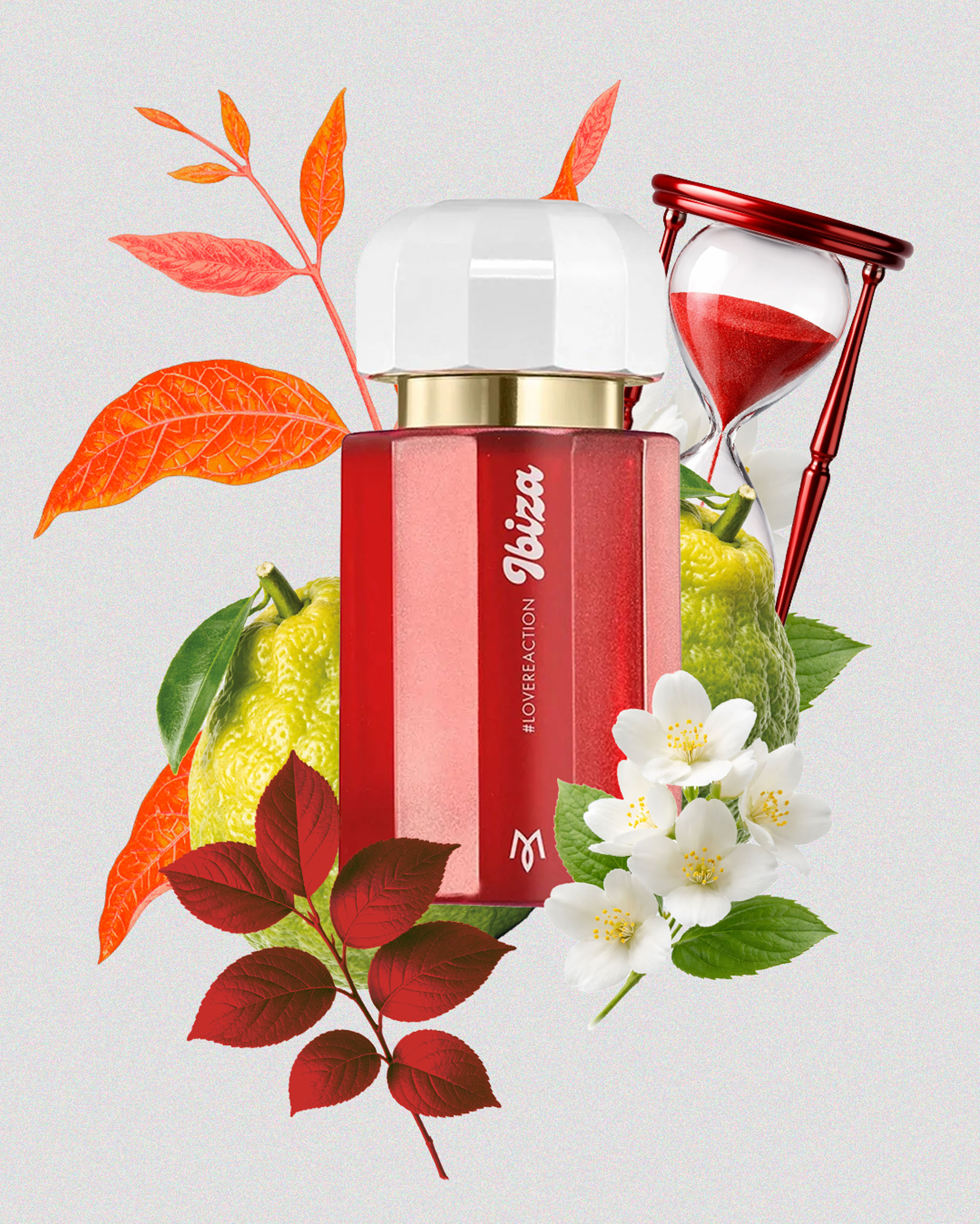 Як описати літній роман ольфакторною мовою? Таким питанням задалися Ramon Monegal, які відтворили бурхливі почуття в піраміді аромату Ibiza #LoveReaction. За свіжість почуттів відповідають верхні ноти – бергамот, кедр і жасмин. У серці аромату — пристрасно-теплі акорди сандалу, ванілі та моху. Водночас базові ноти карамелі, цукрової вати та мускусу залишаються надовго — як той самий роман, що неможливо забути.