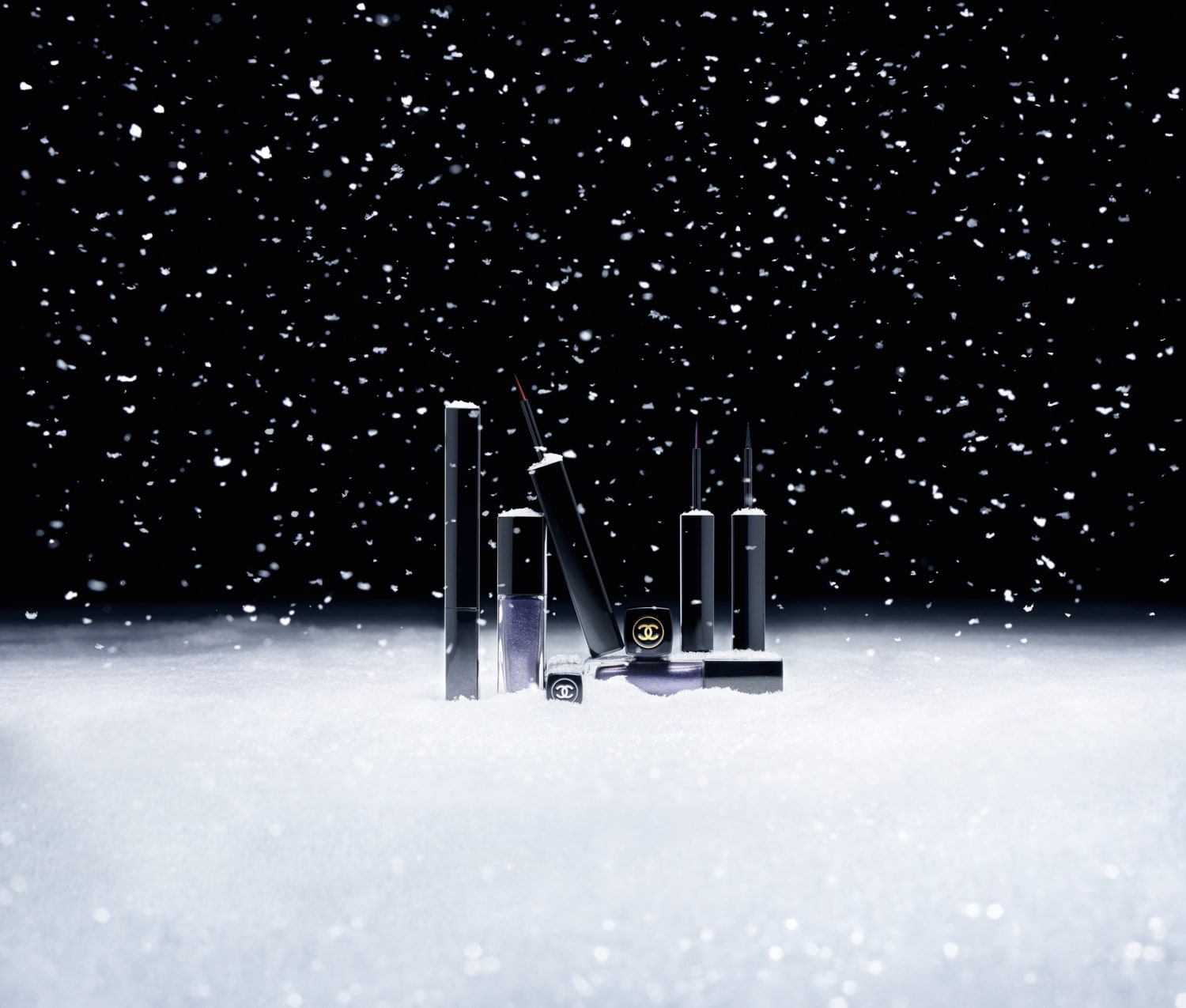 Chanel перевтілили кольори зими в відтінки нової колекції декоративної косметики. До неї ввійшли палітра тіней в фіолетових, рожевих та базових кольорах, сяючі олівці для очей, хайлайтер з тисненням новорічної символіки, лак для нігтів, а також чотири лімітовані відтінки помади ROUGE ALLURE L'EXTRAIT в ексклюзивному флаконі зі сніжинкою.