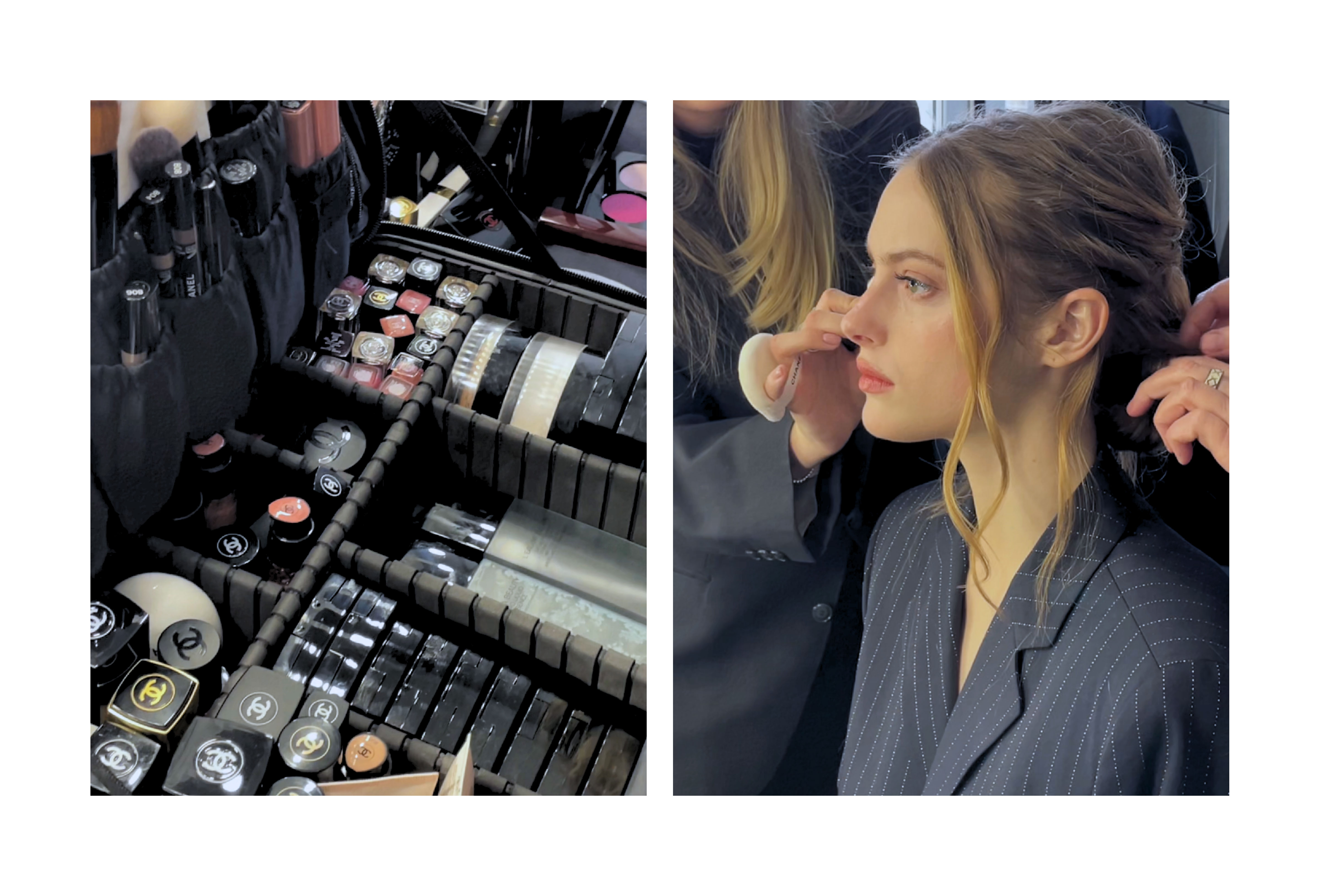 Невагомий мікрофлюїдний тон LES BEIGES Water Fresh Touch дозволив покращити колір обличчя, залишивши на шкірі ефект природнього сяйва. Дрібні недоліки на шкіри візажисти Chanel Beauty приховали за допомогою консилеру ULTRA LE TEINT — водостійкого, з приємною текстурою та рівнем перекриття від середнього до високого. У якості корекції обличчя був використаний N1 DE CHANEL Lip And Cheek Balm у відтінку #2 Healthy Pink.