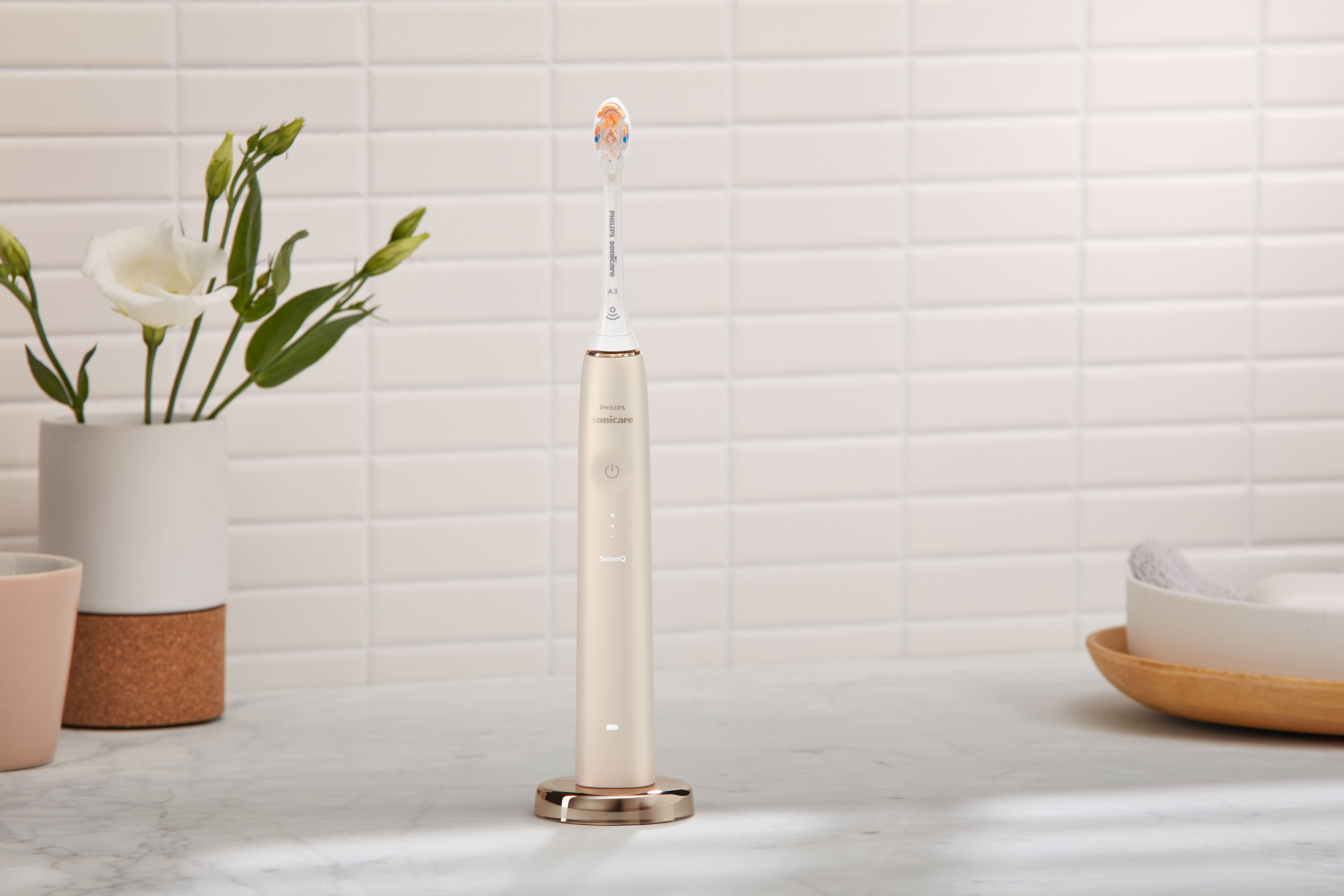 Завдяки технології SenseIQ зі штучним інтелектом ви можете насолоджуватися легким доглядом, адже в щітку вбудовані спеціальні сенсори, які під час чищення сканують ротову порожнину 100 разів за секунду. Мікропроцесор, убудований у ручку щітки, аналізує дані, отримані з сенсорів, миттєво реагуючи на зміни завдяки штучному інтелекту.