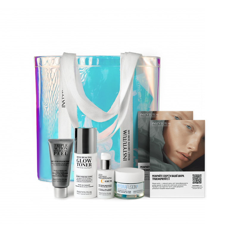 До його складу входять кислотний тонер RESURFACING GLOW TONER, який містить гліколеву кислоту та ніацинамід, завдяки чому відлущує змертвілі клітини й оновлює шкіру, помітно розгладжує зморшки, вирівнює тон шкіри і візуально зменшує пори на 50% за 6 тижнів використання.