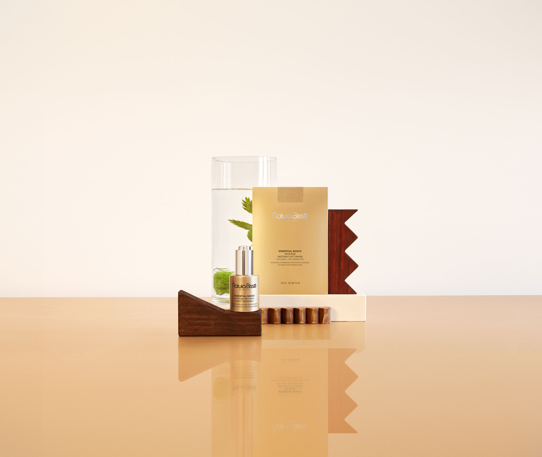 - Natura Bisse Essential Shock Intense Retinol Night Renewal — нічна сироватка з інтенсивною відновлювальною дією. Вона вирівнює тон та мікрорельєф, повертає сяйво, стимулює регенерацію, посилює захисні властивості шкіри. Засіб ефективний щодо пігментних плям та інших зовнішніх ознак старіння.