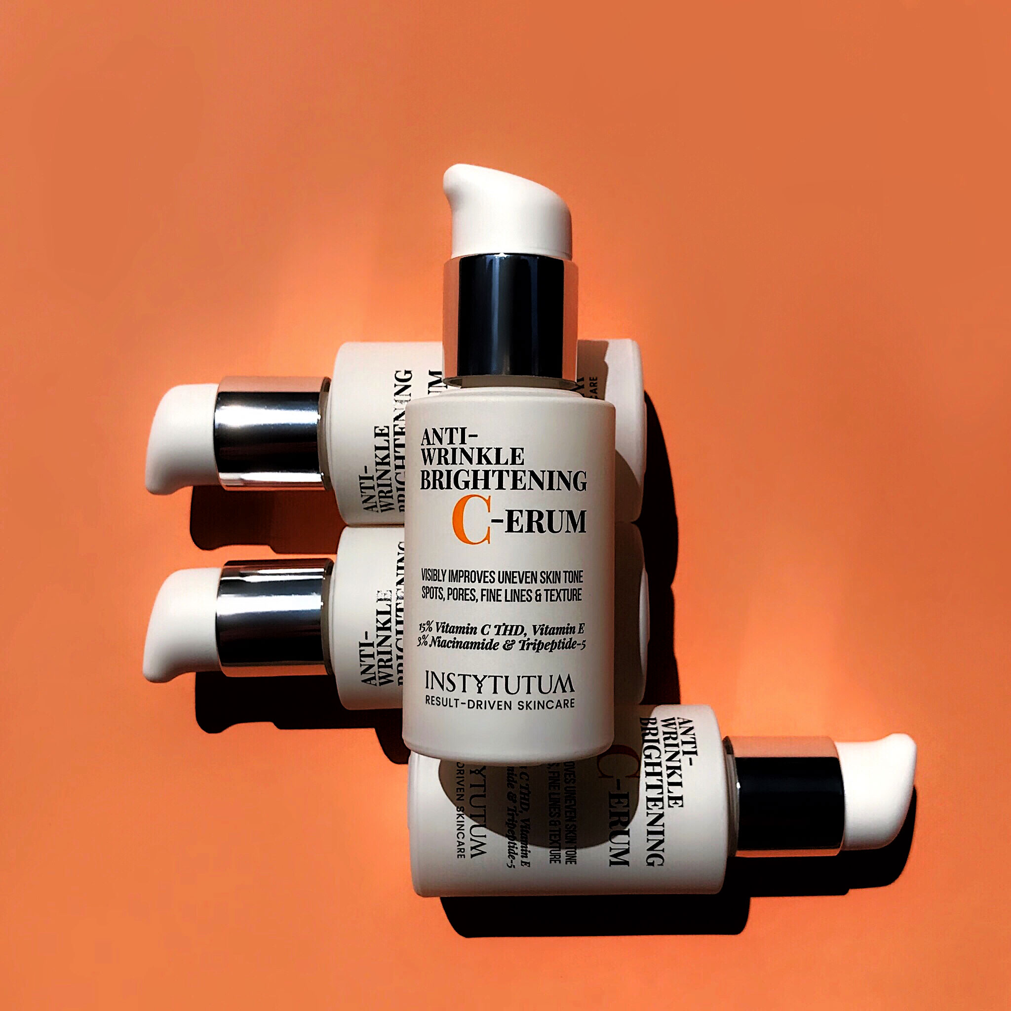 Другий етап — сироватка з вітаміном С ANTI-WRINKLE BRIGHTENING C-ERUM, яка містить стабільну форму вітаміну С THD в оптимальній концентрації 15%, а також ніацінамід, вітамін Е та трипептид, що посилює синтез колагену. Серум має потужну антиоксидантну дію і вирівнює тон шкіри