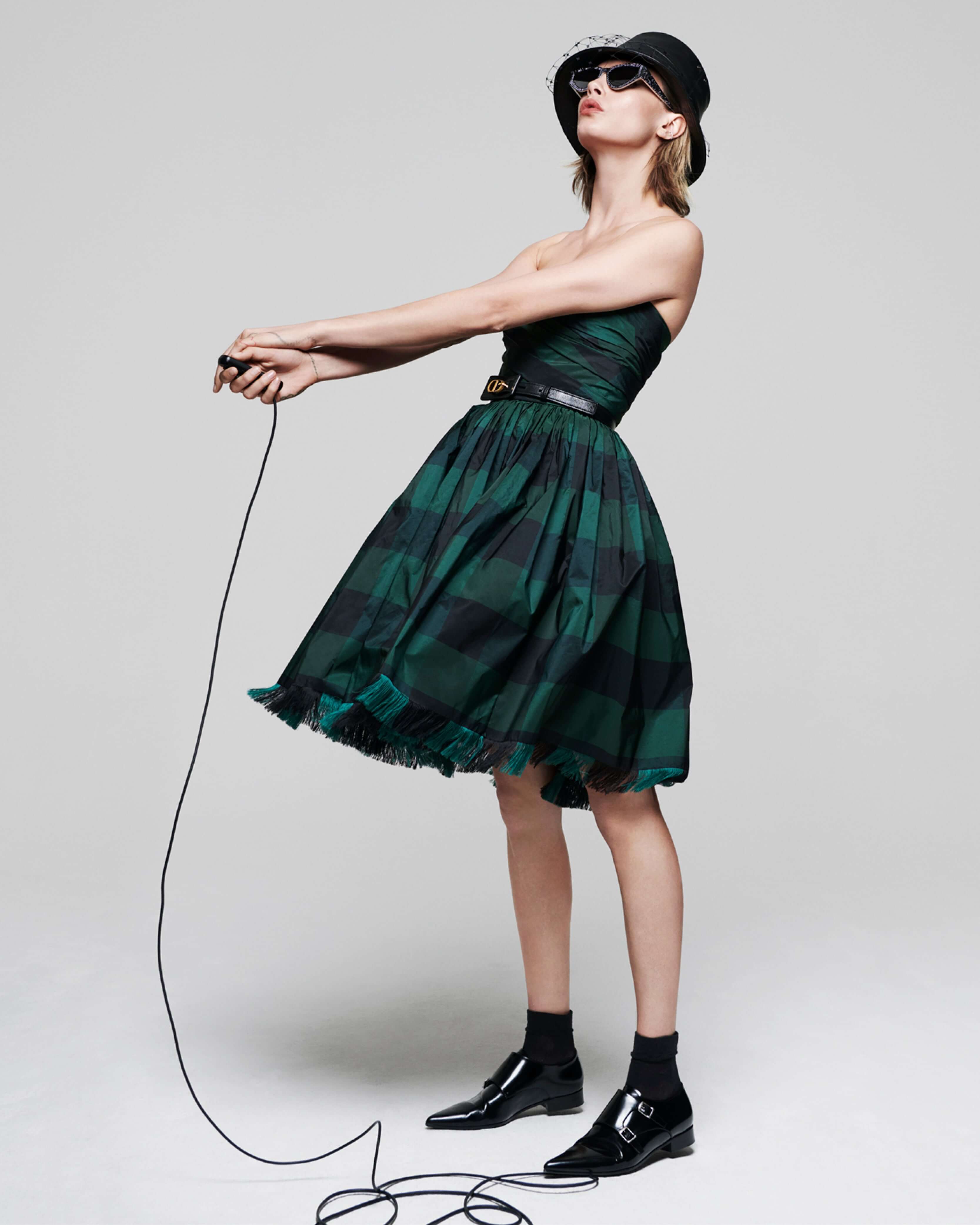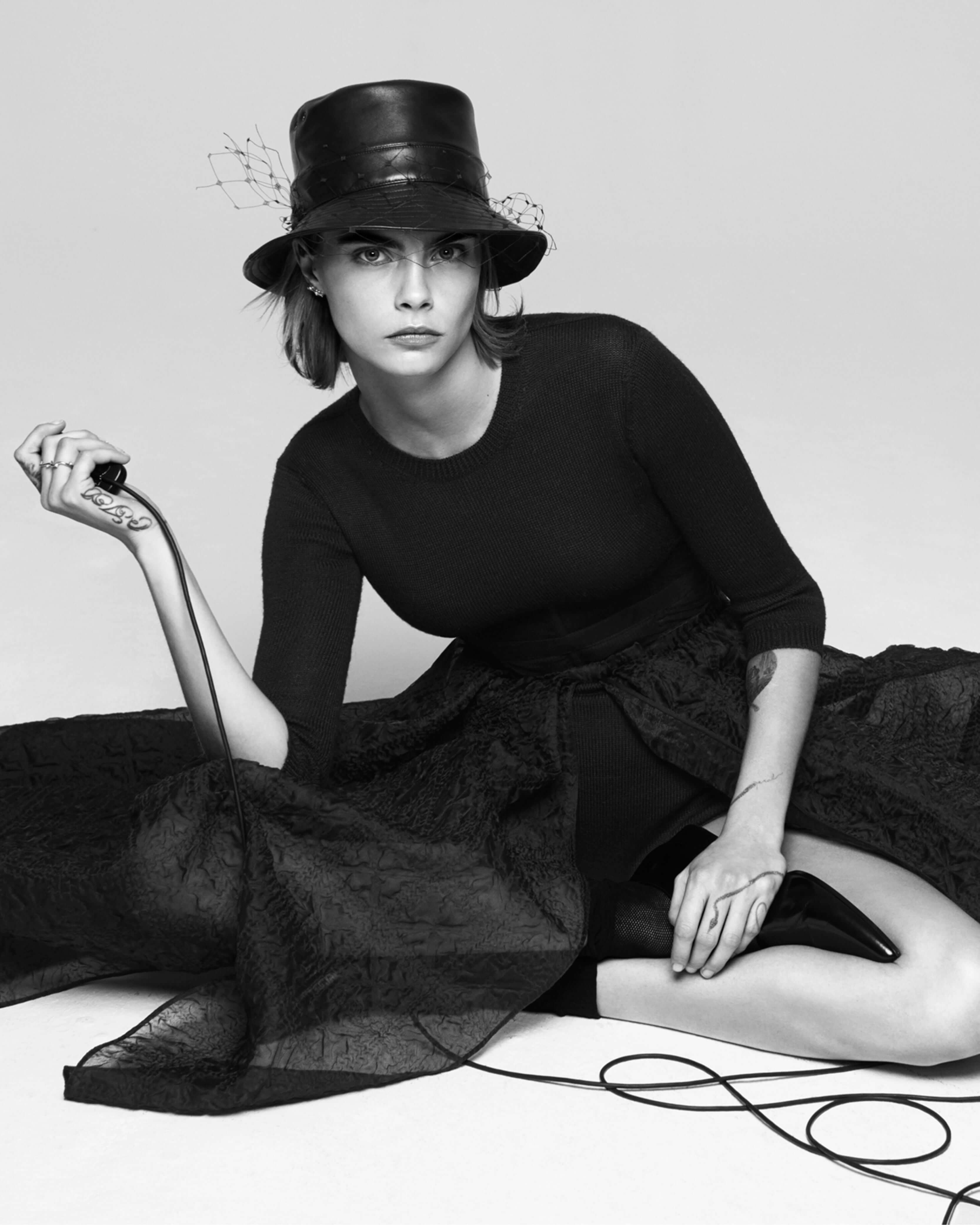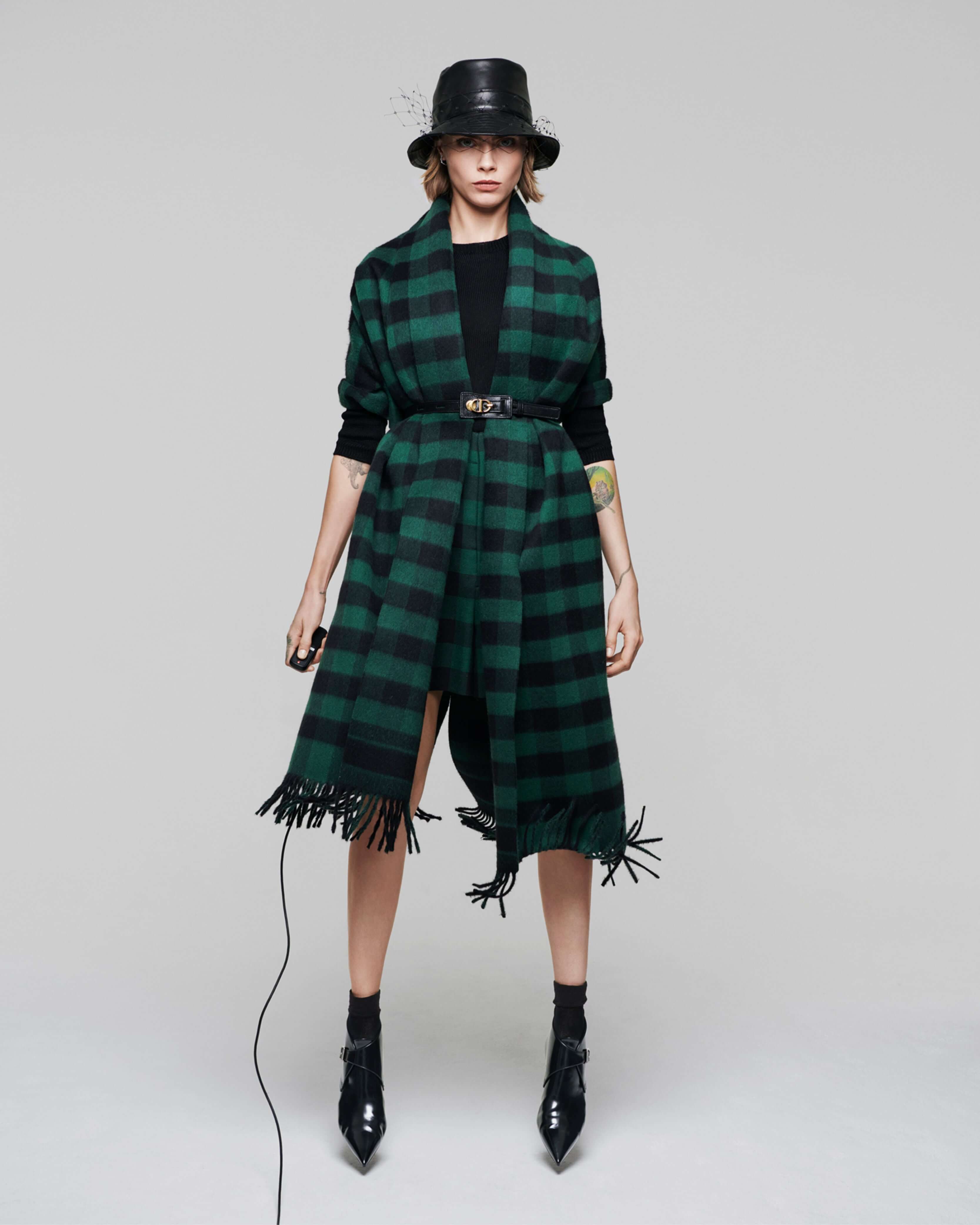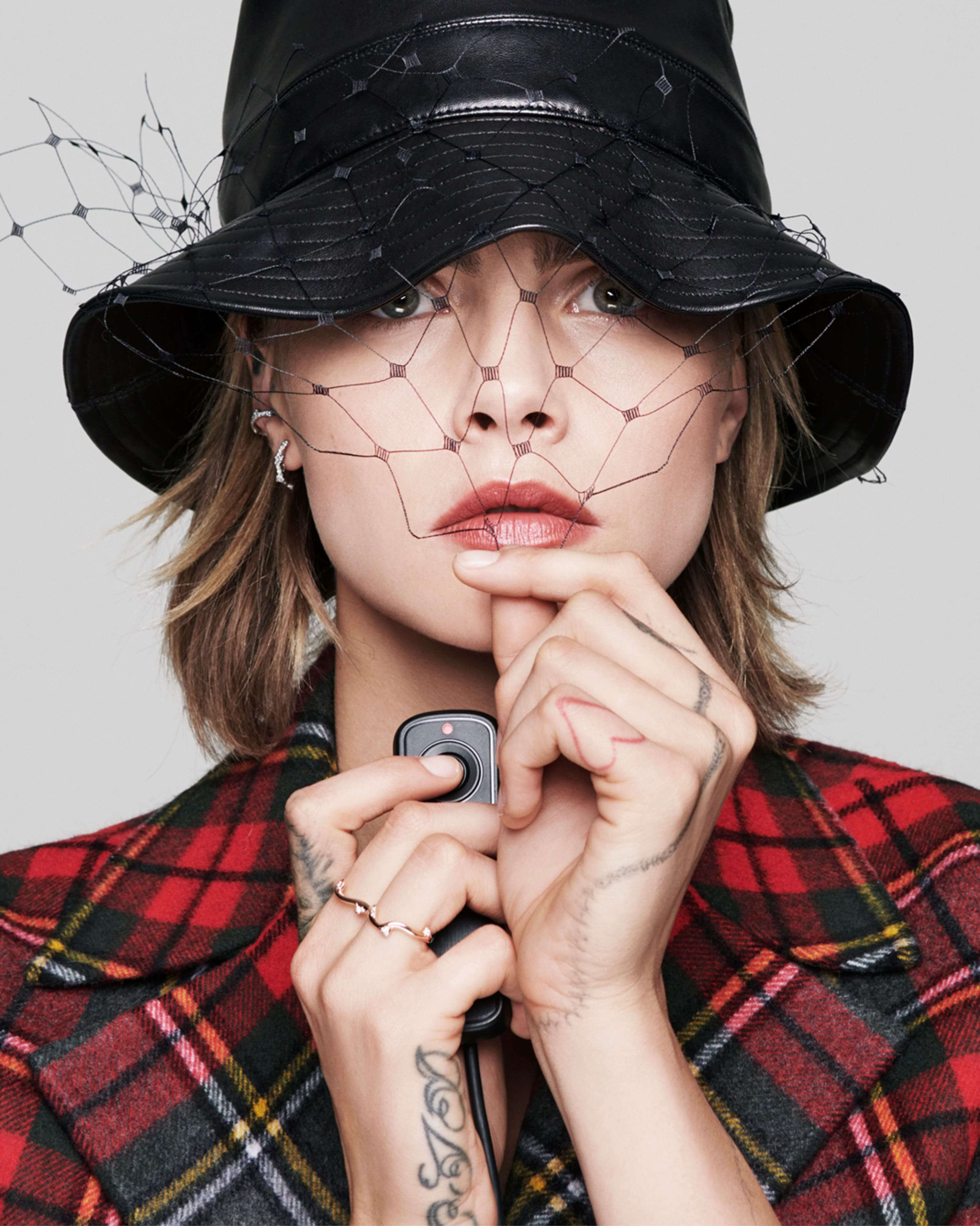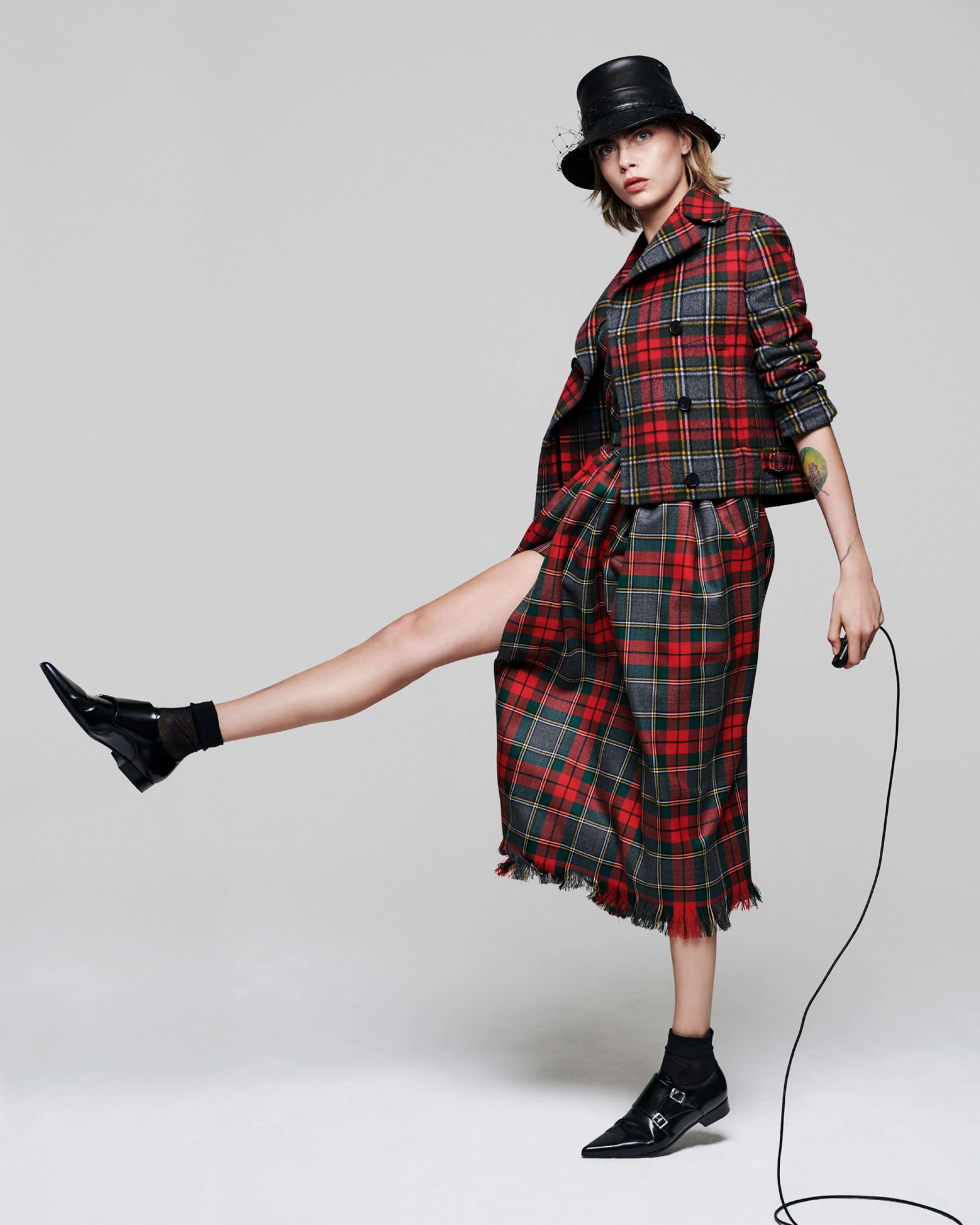 Британская модель и актриса позировала "сама себе" перед объективом в одежде из осенне-зимней коллекции дома. Для автопортретов рекламной кампании Кара примерила клетчатые платья, остроносые ботинки, кожаную панаму и, конечно, помаду персиково-розового оттенка.