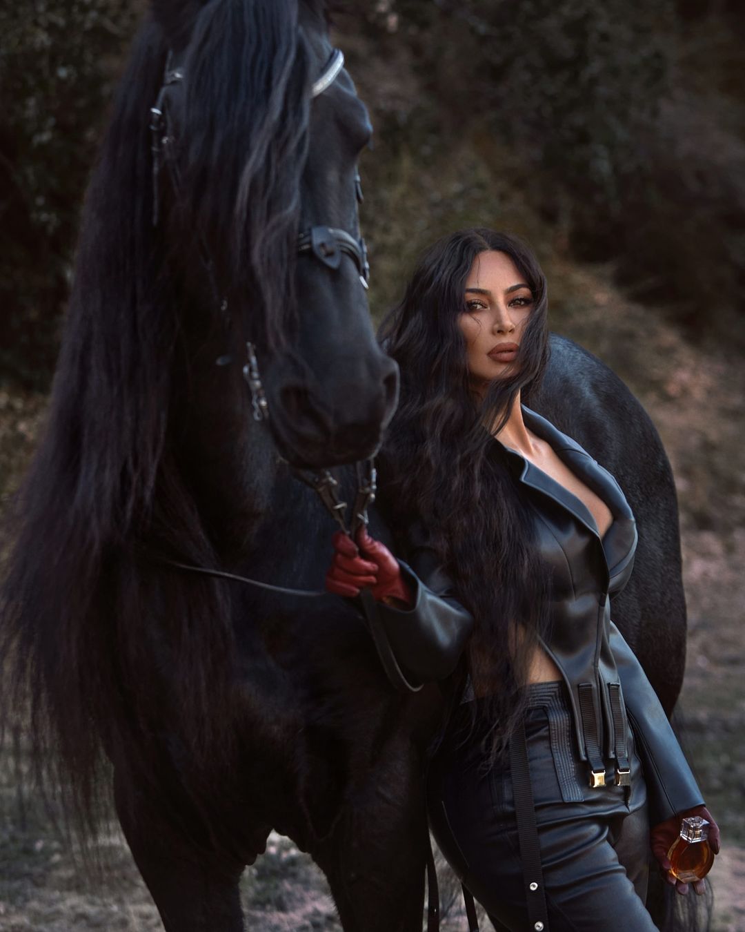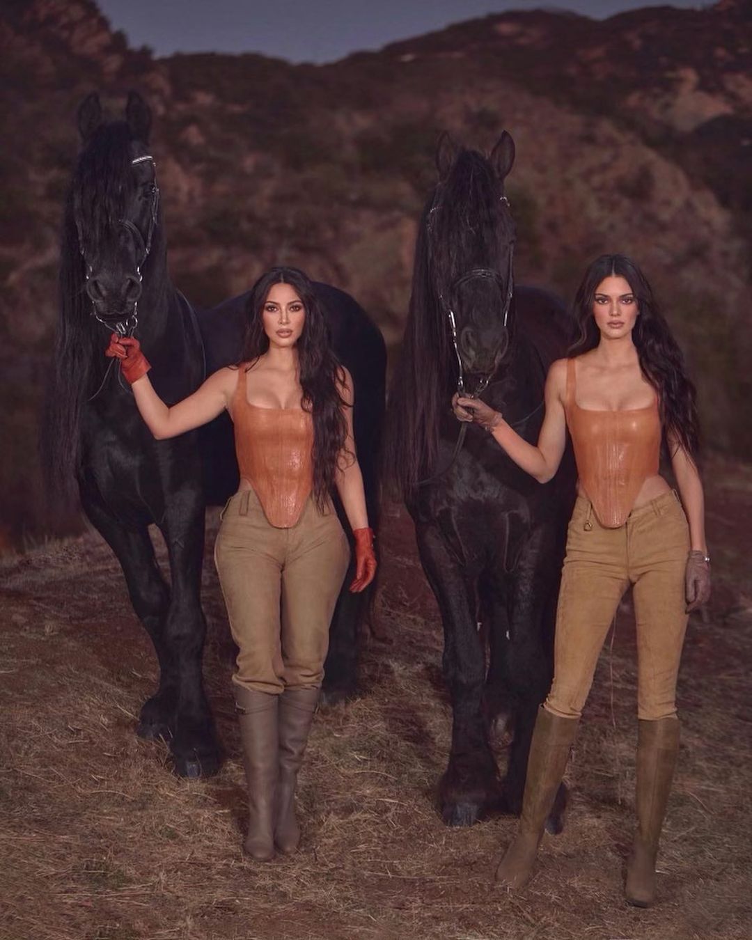 Для промо коллаборации Кендалл и Ким снялись с великолепными черными лошадьми.