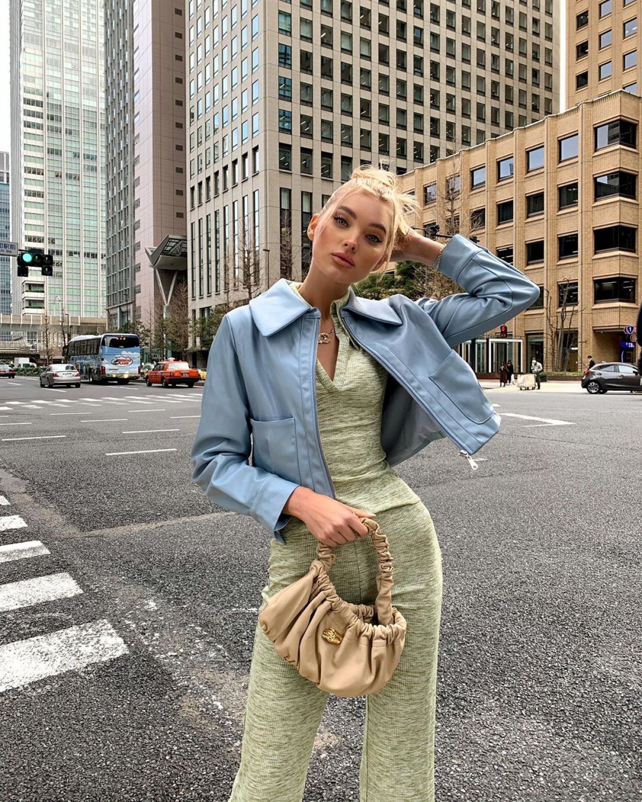 Что носят топ-модели? На самом деле – все самое простое! В арсенале шведской топ-модели Эльзы Хоск силуэтные платья, однотонные или в мелкий, будто бисерный принт, трикотажные костюмы, кожаная куртка, футболки с рукавом ¾ и прямые джинсы. Эльза не фанат украшений – максимум пару подвесок или минималистичные серьги. Образы модель дополняет белыми кроссовками или открытыми босоножками.