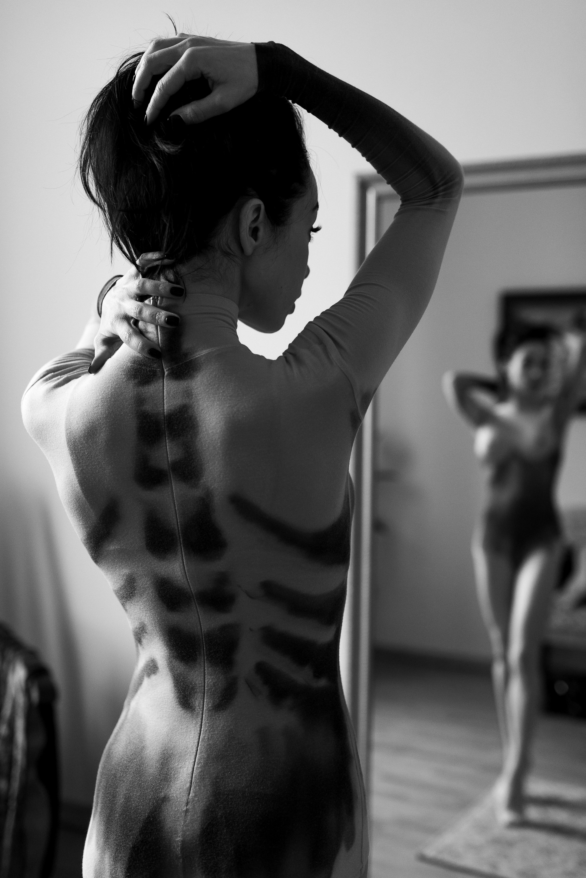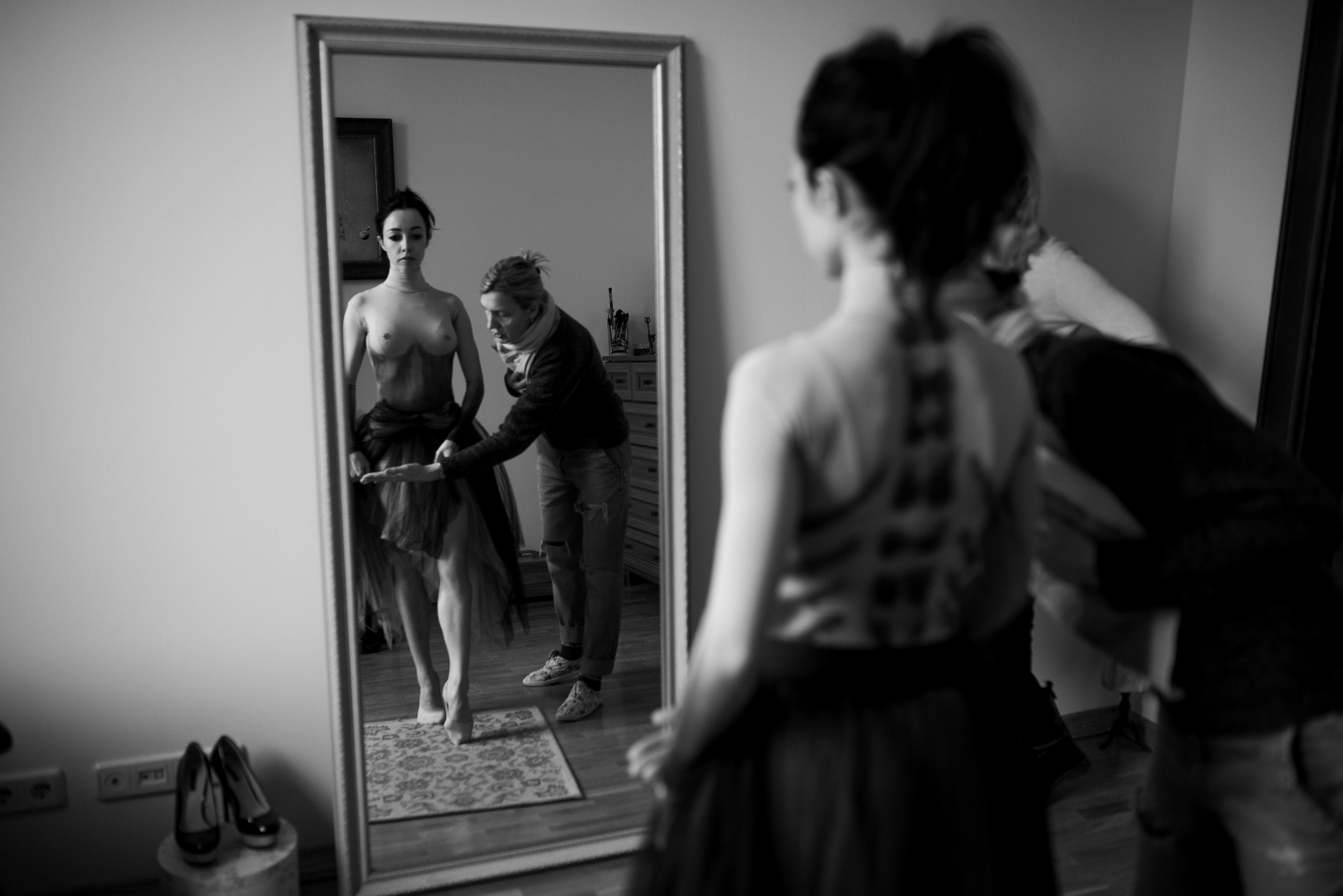За те полгода, которые готовились костюмы, было очень много вариантов и трансформаций: «Например, юбки изначально вообще не было. Но как-то я репетировала «Жизель», а затем приступила к репетиции Children of the Night и не успела снять юбку-хитон, а ведь там уже другая пластика и движения, поэтому, чтобы она не мешала, я просто подняла ее и закрутила впереди – мне понравилось, как это выглядит, как я себя ощущаю и так у нас появилась эта юбка.