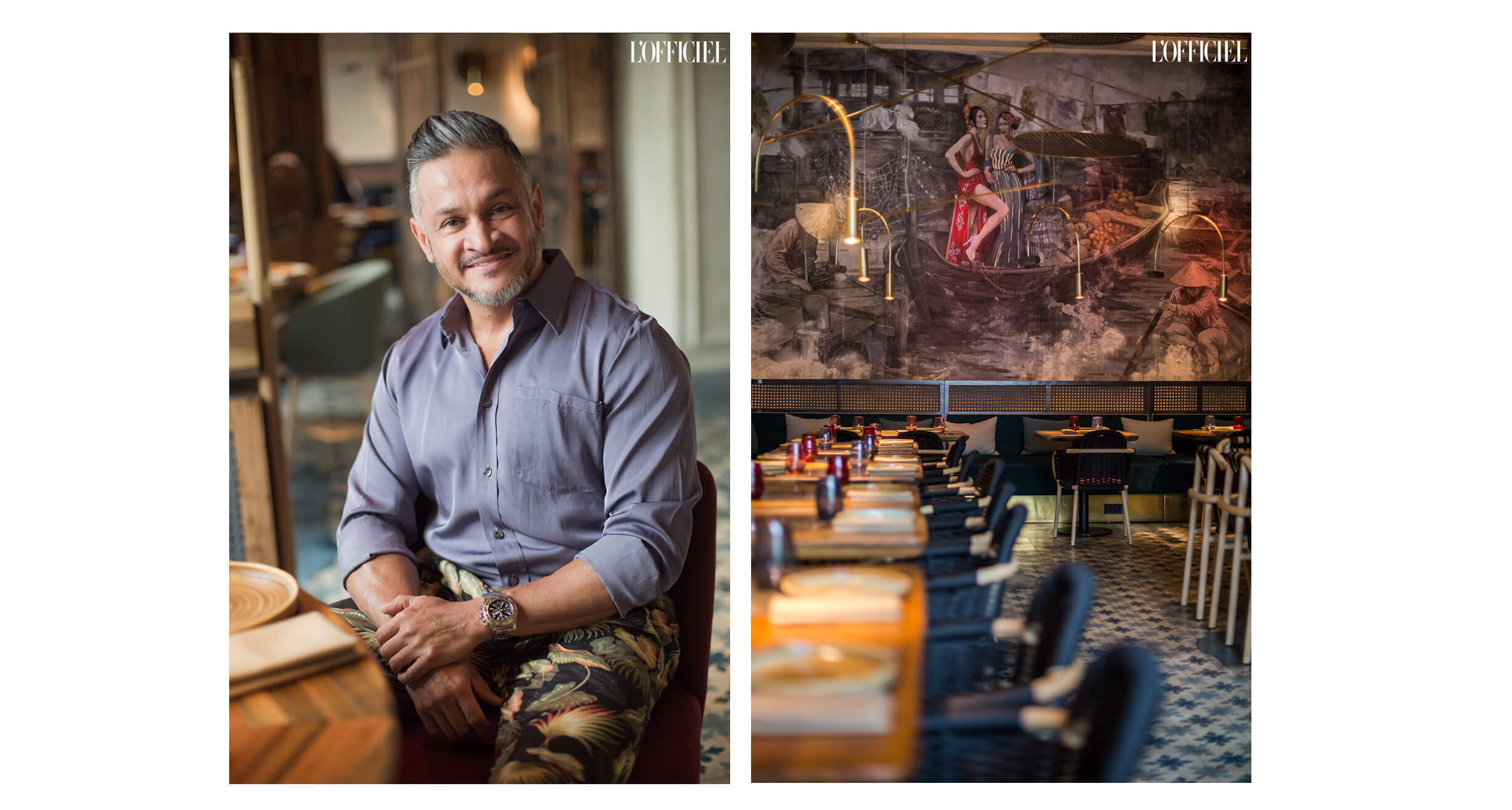 Для всех ресторанов у меня всегда есть картинка в голове, коллаж, как бы я хотел, чтобы они выглядели. Потом я сажусь с командой декораторов и начинаю прорабатывать детали. Если вы поедете в Хошимин или Ханой, главные достопримечательности там — это старые французские виллы времен Колонии, которые разбросаны посреди джунглей. Первое, что мне понравилось в этом помещении, — это то, что здесь можно было воспроизвести ощущение французской виллы. Характера добавили за счет деталей — резной деревянный потолок, потертая плитка, старые фрески. Последние переделывали в течение 4 месяцев, пока не довели их до совершенства, а потом еще время ушло на то, чтобы сделать правильное освещение: свет постоянно меняется, то высветляя, то затемняя отдельные части фрески.