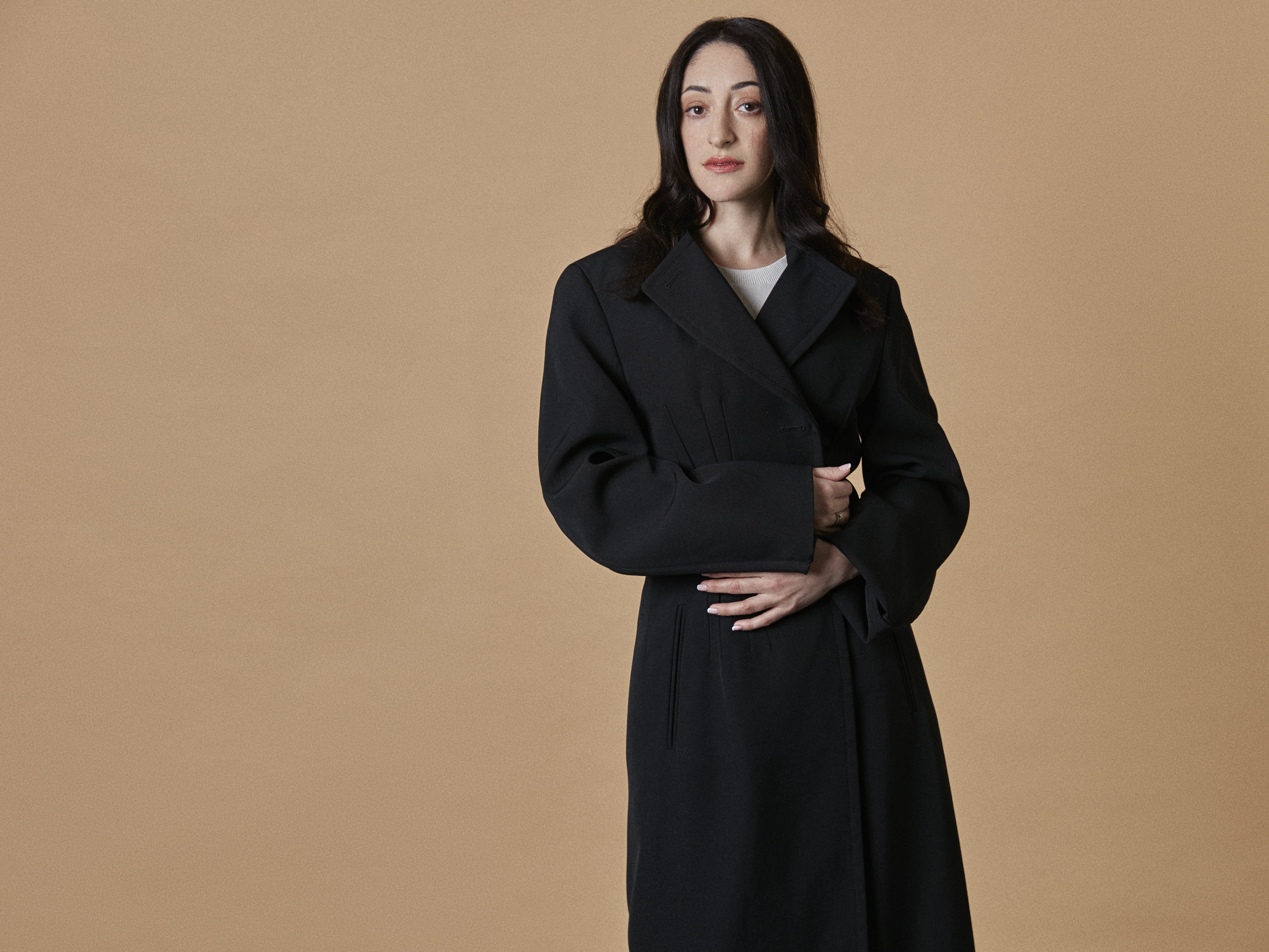 Платье Joseph, брюки David Koma, пальто и ботинки Burberry