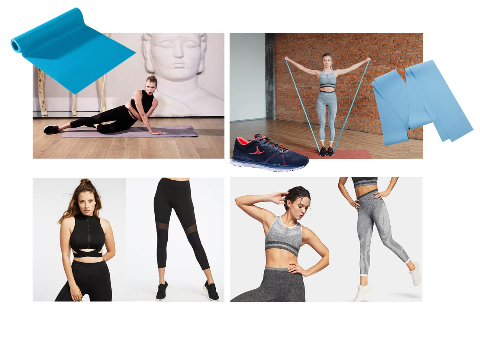 И наконец, одной из важнейших составляющих активного гардероба является обувь, от которой зависят комфорт и эффективность тренировок. Для упражнений Алла выбирала несколько пар обуви от компании Decathlon и их собственного бренда Domyos, который выпускает продукцию для фитнеса и силовых упражнений. Кроссовки Domyos 500 для кардиофитнеса с передними регулируемыми ремешками, которые препятствуют травмированию стопы во время движений в разных направлениях. Также Алла тернировалась в беговых Run Cushion от бренда Kalenji и Domyos 100 для фитнеса, которая имеет рифленую подошву в области носка, а это способствует более естественному движению стопы и смене направление движения.