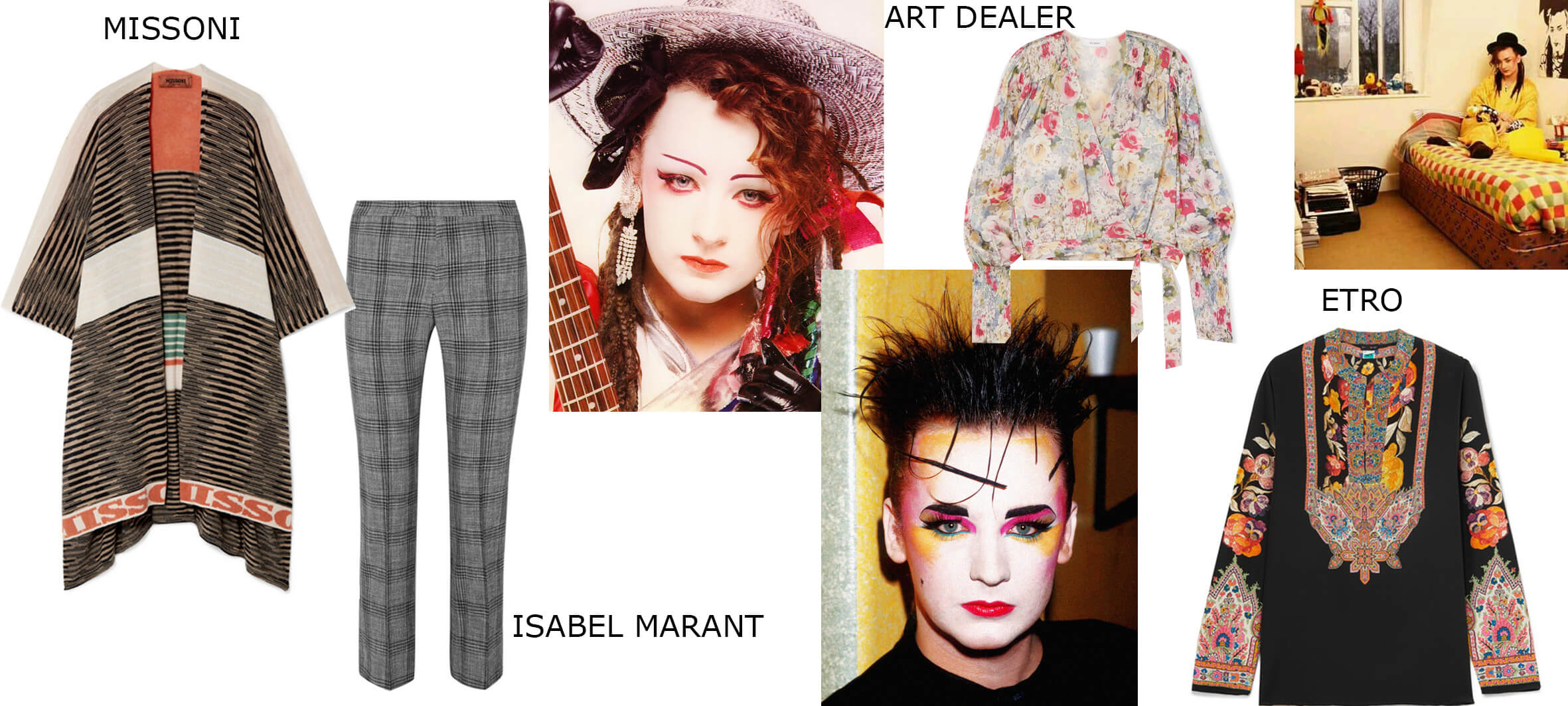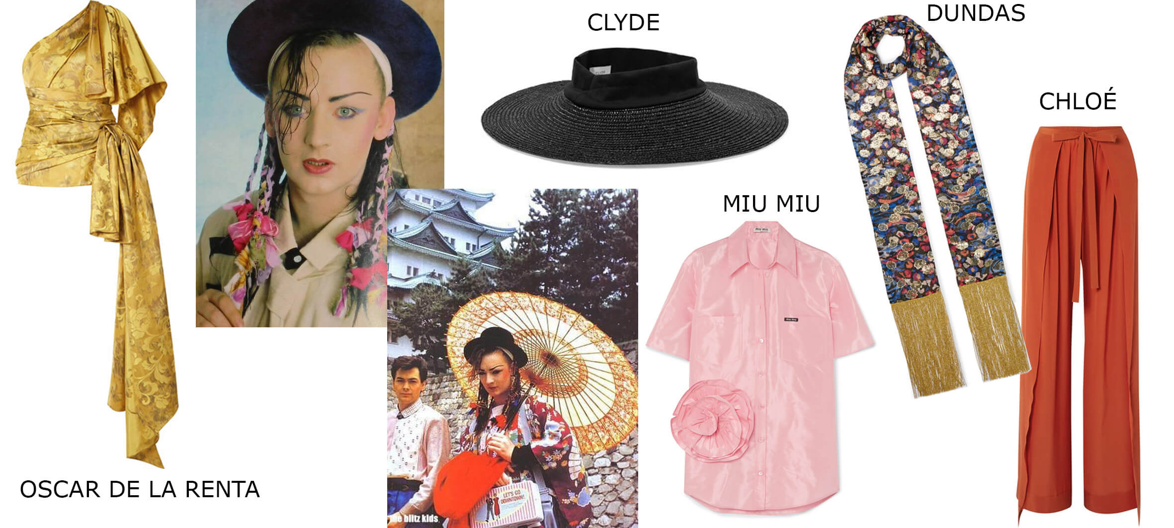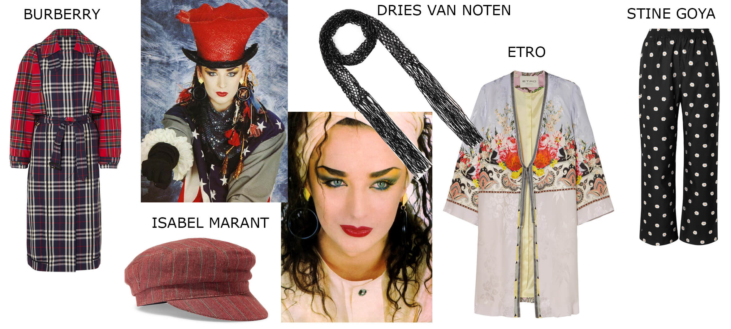 Джордж всегда живо интересовался культурными течениями стран Востока, их глубокой философией и идеями эстетической декоративности мира предметов. Он перенимал наиболее близкие смыслы и тут же воплощал в своём внешнем виде. И если в 70-х своим видом будущий поп-идол напоминал женственного панка — в бархатных пиджаках с огромными плечами, с вытянутыми во все стороны, торчащими волосами, то к началу 80-х его образ полностью трансформировался в совсем уникальный, ни на что не похожий: цветные ленты в волосах, как у тибетских женщин, высокие шляпы с широкими полями, ориентальные халаты с вышивками и обязательная еврейская символика — еще один нонконформистский жест Джорджа.