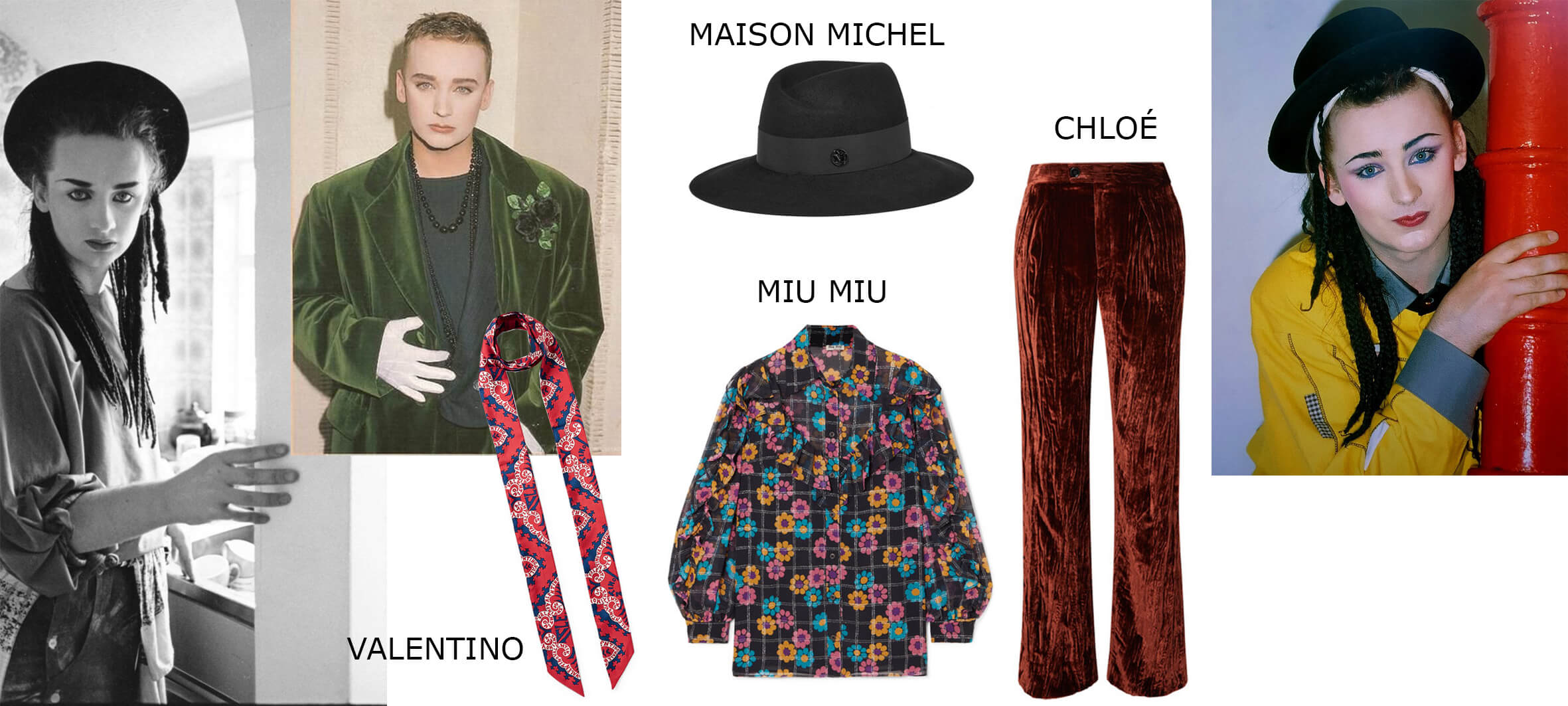 В юности Джордж подрабатывал в супермаркете, откуда стащил блондирующую краску для волос, устроив на своей голове настоящую феерию из мелированных прядей. Такая трансформация очень вдохновила будущего артиста на более смелые эксперименты. К тому же Джордж обожал уже бывшего на то время иконой безумного фантазёра Дэвида Боуи — главный его образ Зигги Стардаста указывал миру на то, что человек волен трансформировать себя бесконечно, выражая тем самым важные идеи внутреннего. Так что в сознании парня всё сошлось и опыты над внешним продолжились. В будущем, когда начинающий композитор и певец пришел по объявлению в группу Bow Wow Wow, продюсером которой был знаменитый Малкольм Макларен, а после — основал собственную, получившую в конце концов название Culture Club, его имидж дополнили элементы альтернативной моды Вивьен Вествуд: Джордж носил туники и накидки с известным "извилистым" узором Вествуд. Свой образ артист дополнял удобными, на китайский манер, шароварами и повязывал поверх обуви светлые широкие ленты, как у буддийских монахов.