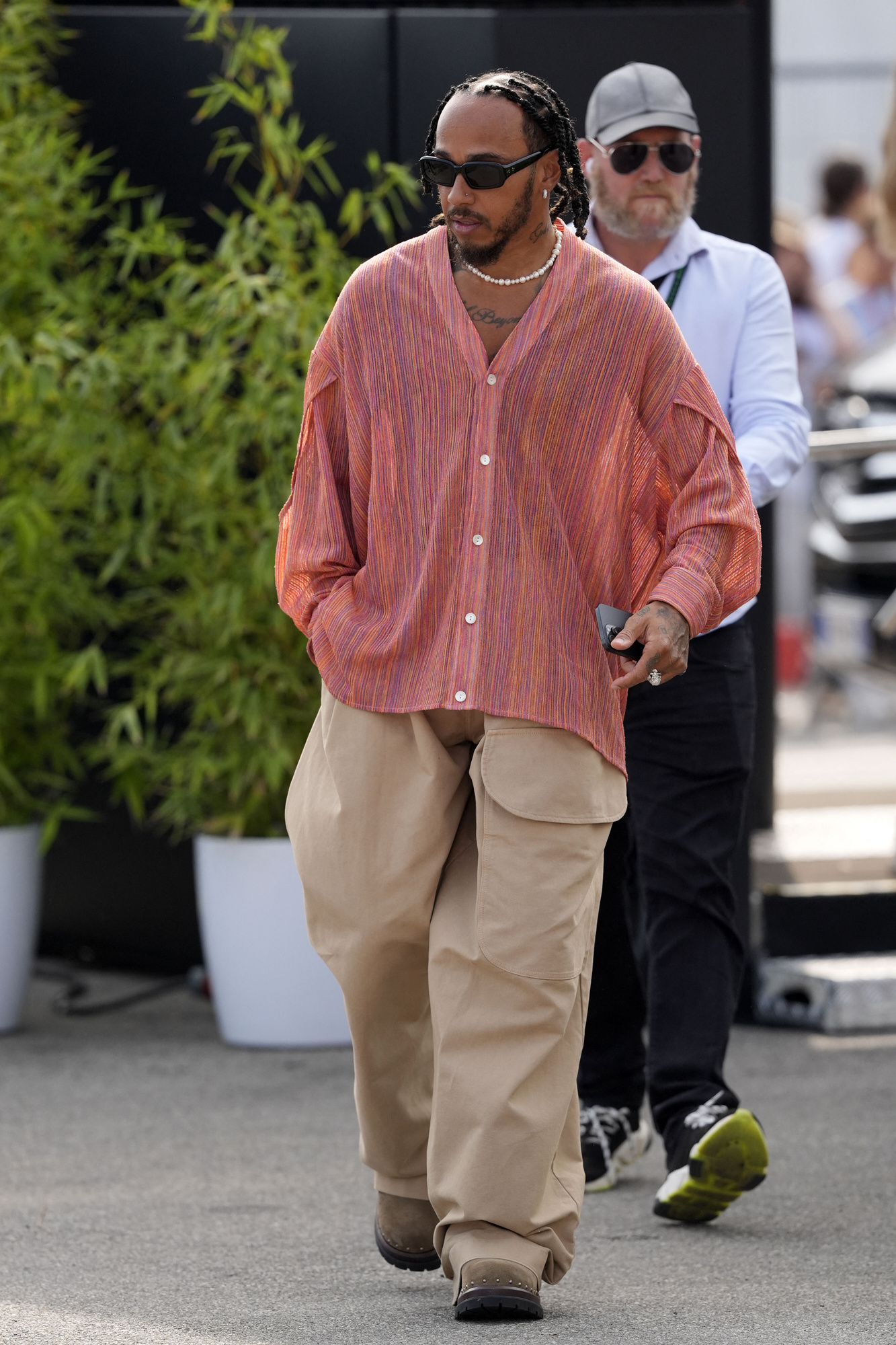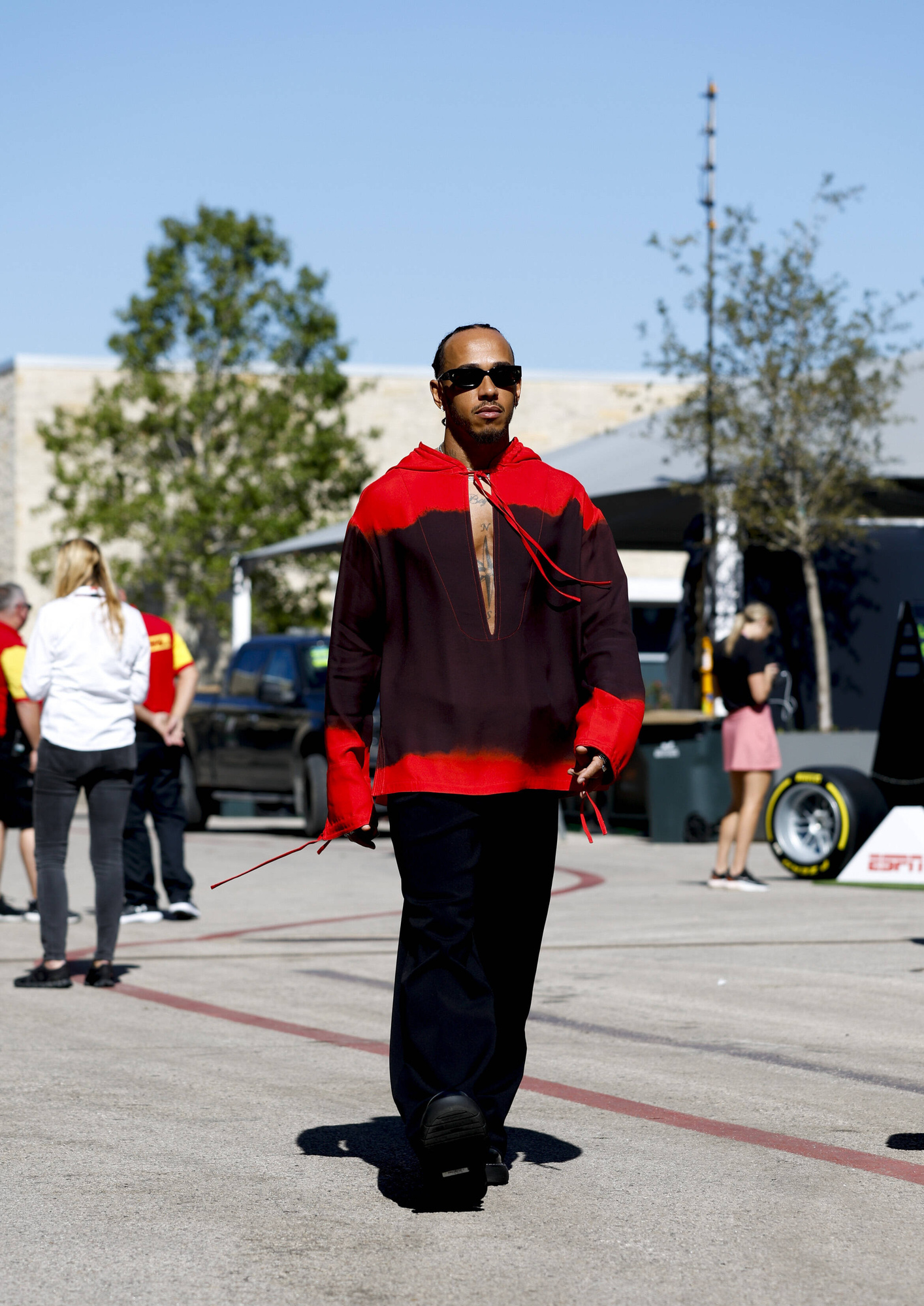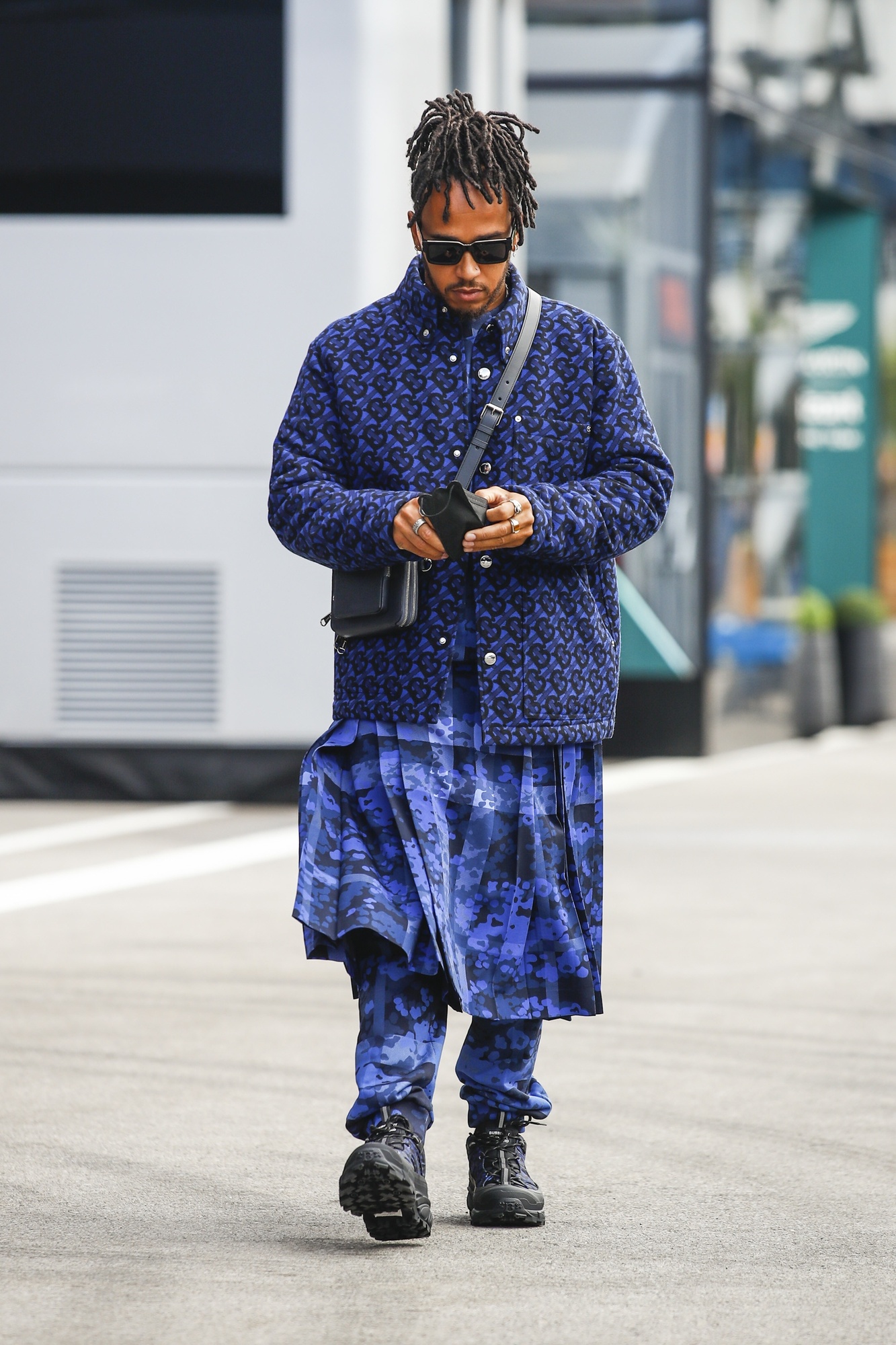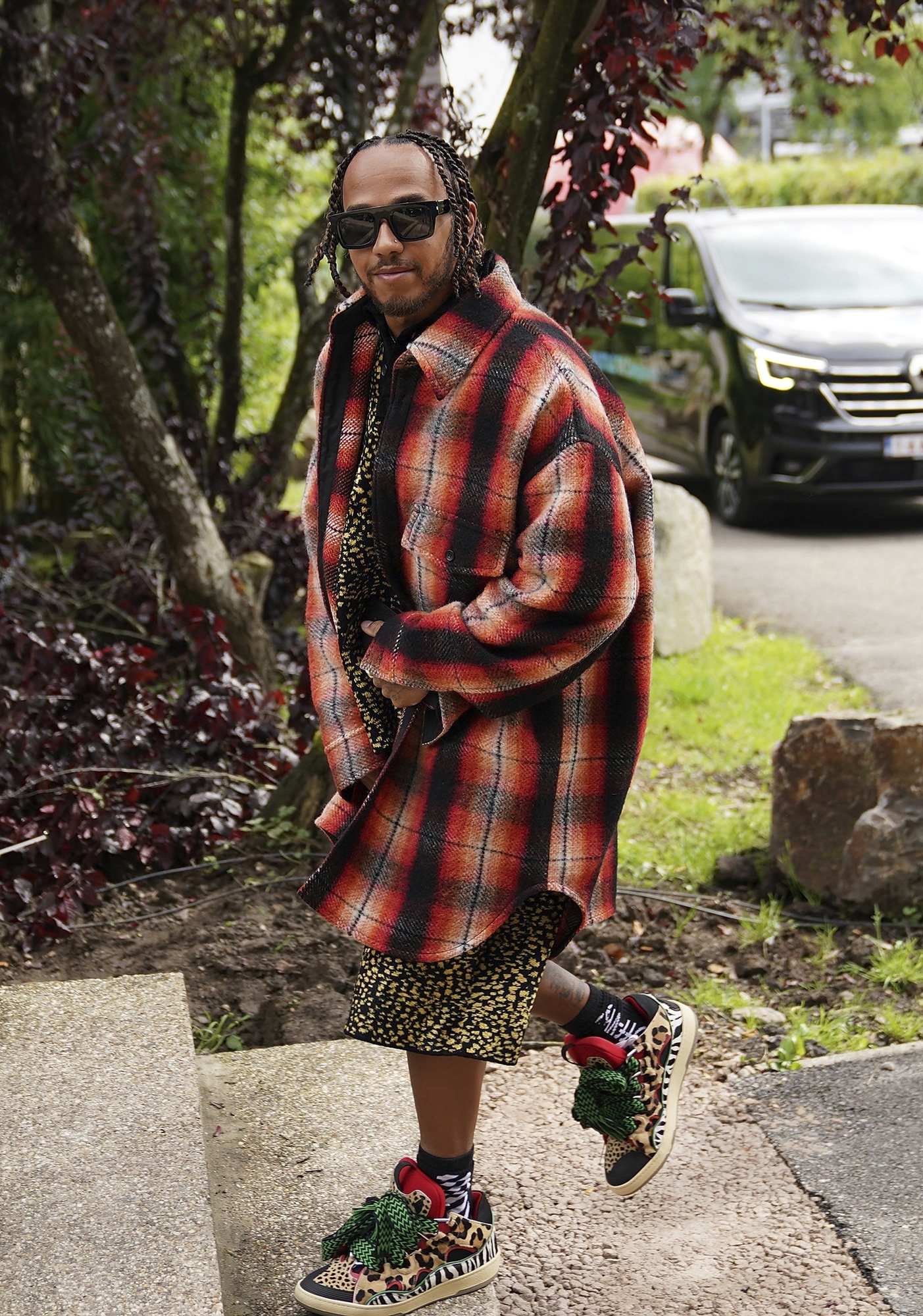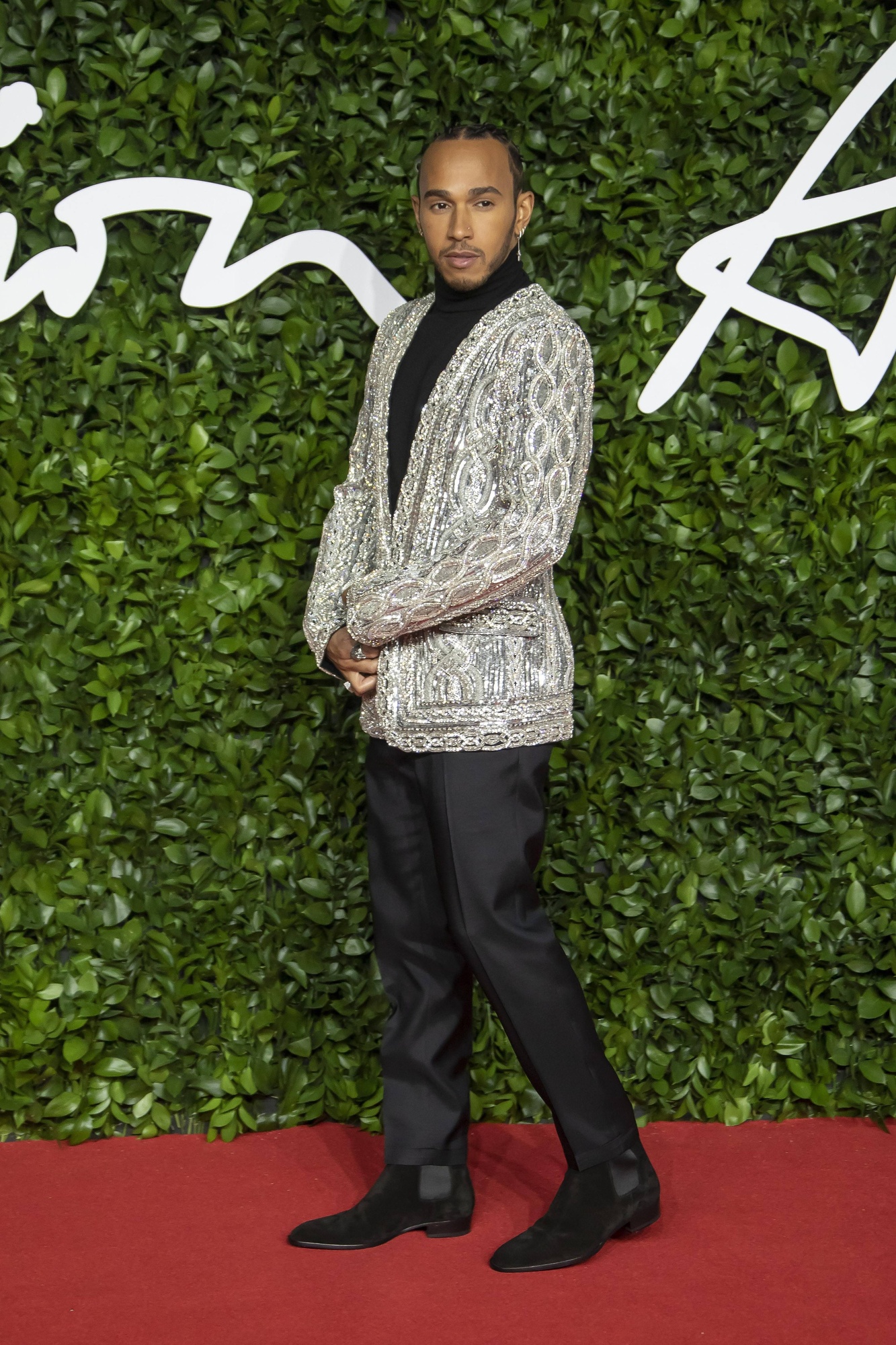 На червоному хіднику образи Льюїса Гамільтона виходять за межі смокінга й метелика завдяки вибору пальт, брошок, вишуканих тканин, блискіток та завжди присутніх прикрас. Його ж стиль поза світськими подіями включає оверсайз силуети, яскраві кольори, бомбери, графічні принти, монохромні ансамблі, деконструкцію й спідниці.