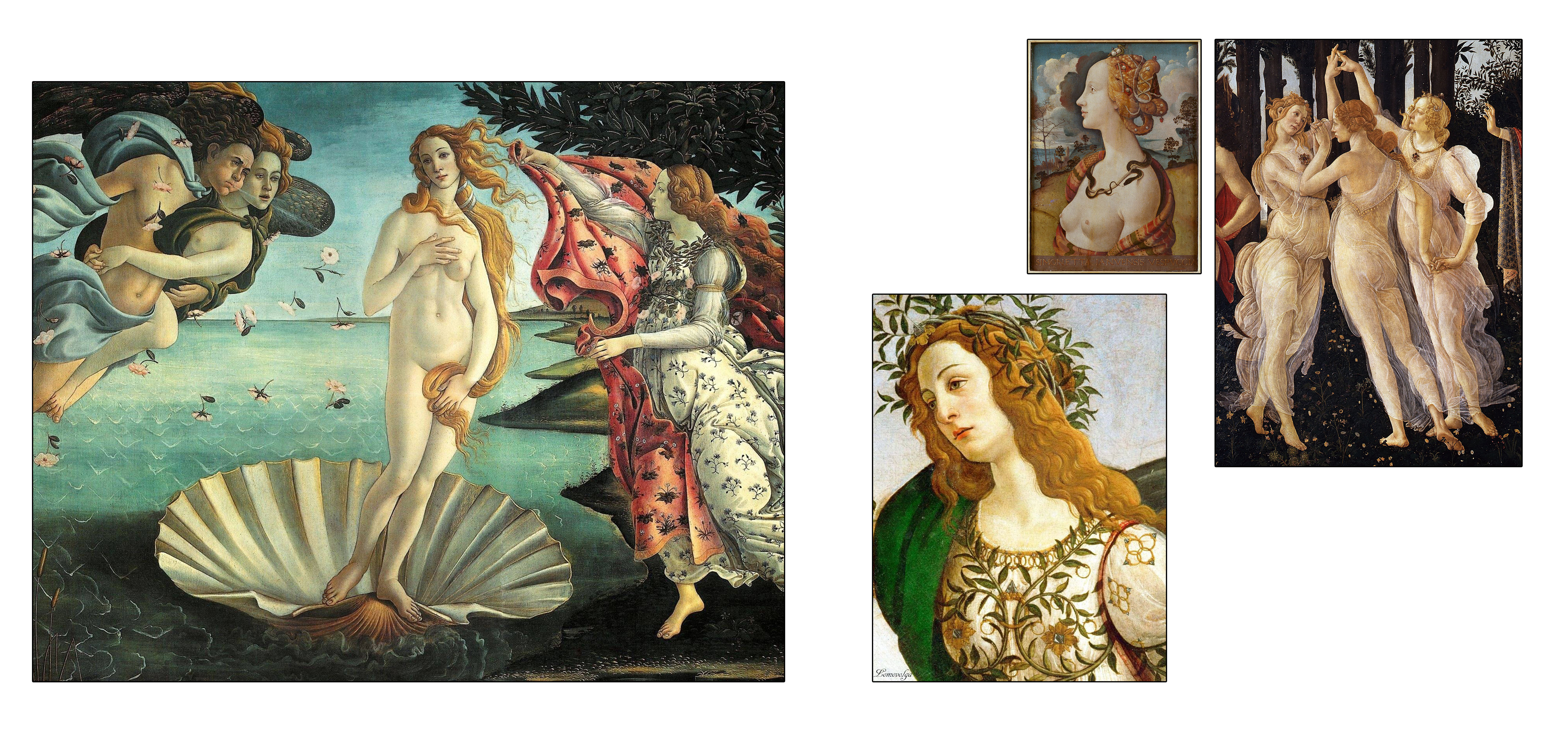 Симонетта Веспуччи служила моделью для всех Мадонн и Венер кисти Боттичелли, была возлюбленной Джулиано Медичи и считалась первой красавицей флорентийского Ренессанса, за что получила прозвище Несравненная.