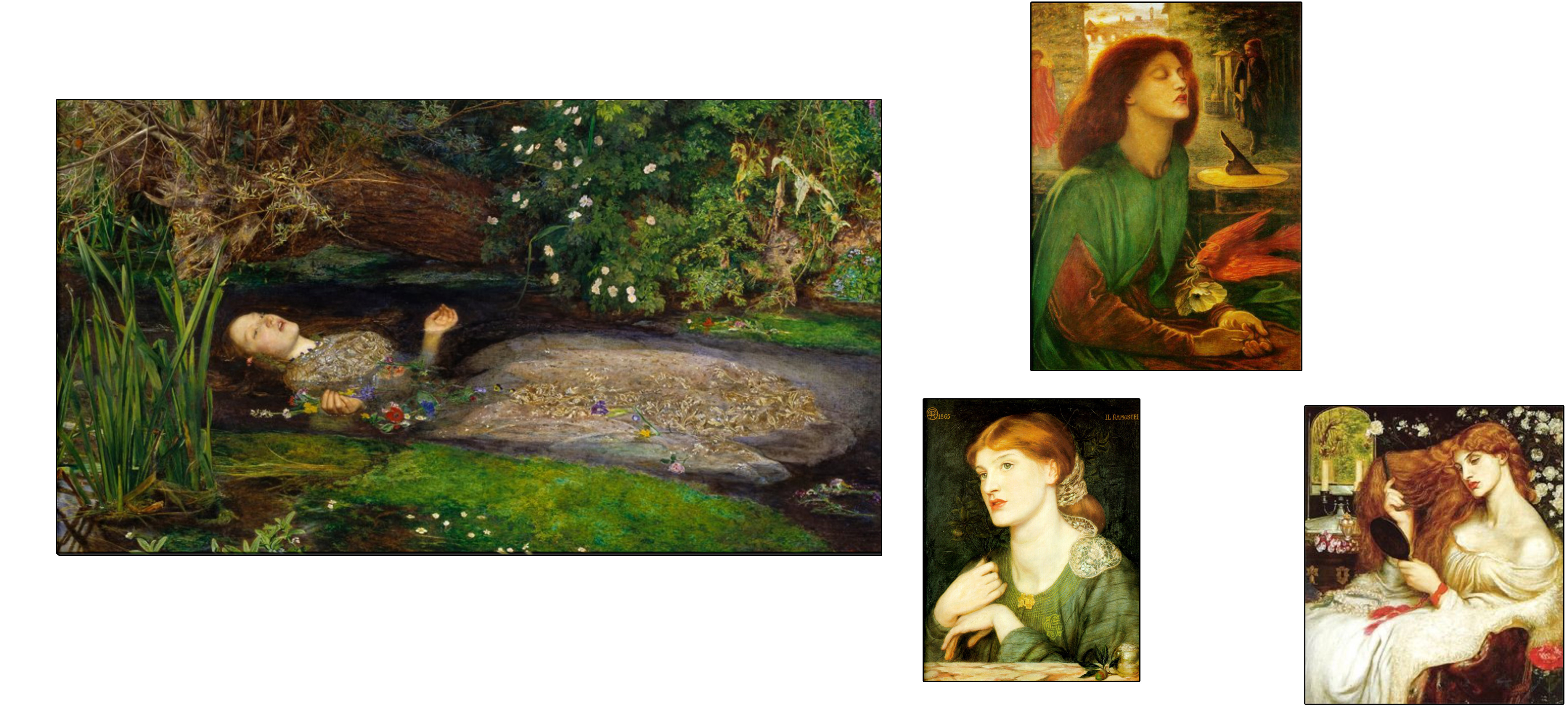 Элизабет Сиддал изображена практически на всех ранних женских портретах Данте Габриэля Россетти, также она позировала Уолтеру Хоуэллу Девереллу, Уильяму Холману Ханту и Джону Эверетту Милле — последний нарисовал знаменитую картину «Офелия». Наверное, нет натурщицы, которая бы оказала такое большое влияние на Братство прерафаэлитов.
