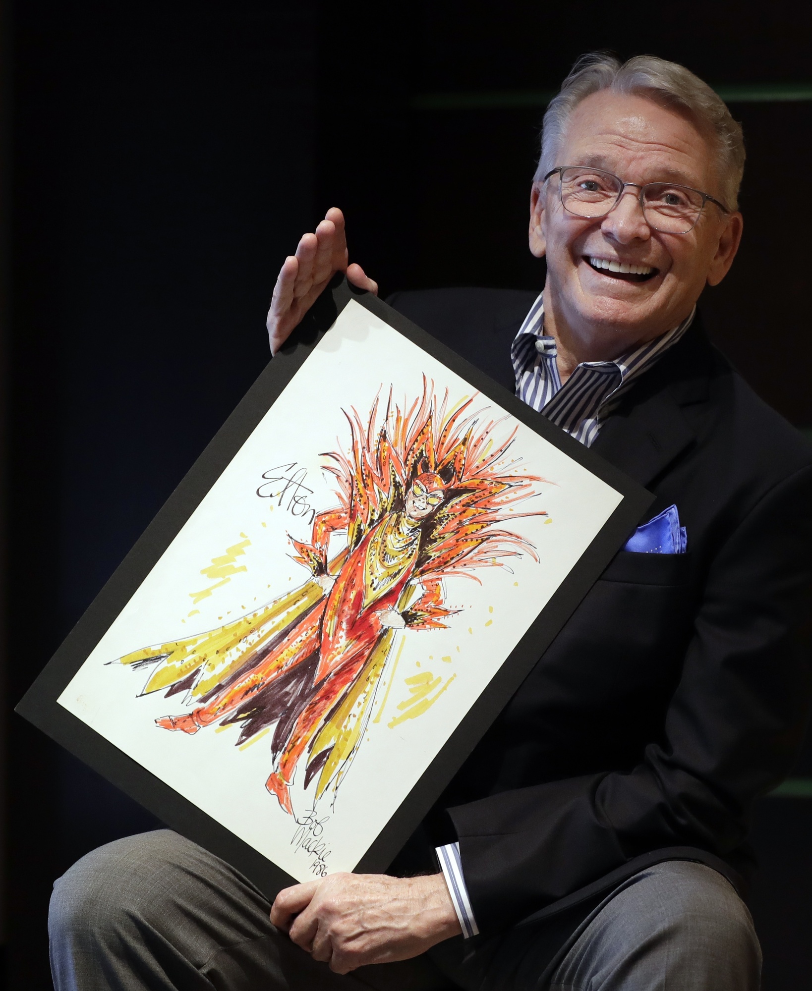 Боб Макі тримає ескіз для костюма Елтона Джона