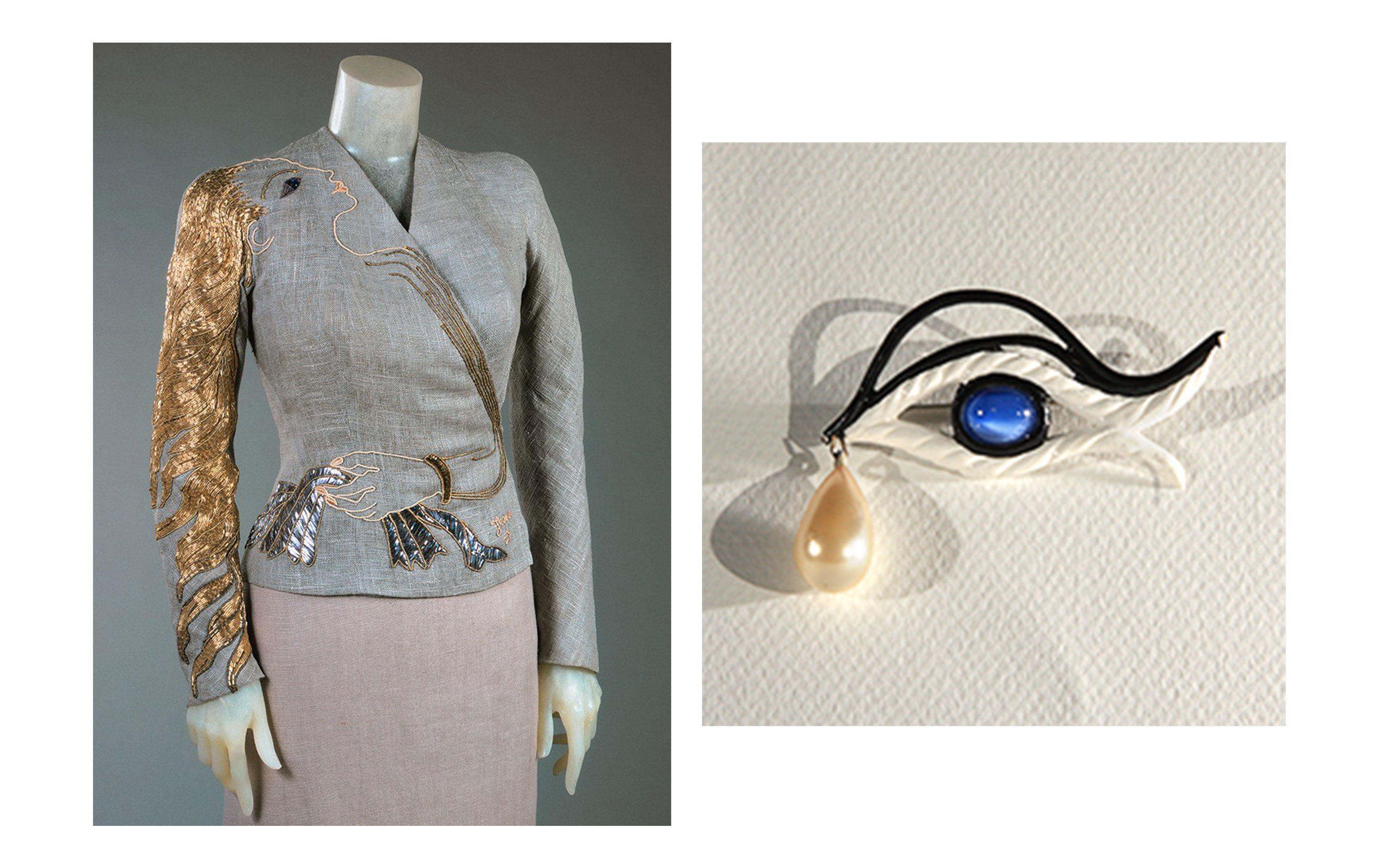 Органічно шляхи Жана Кокто, визначного режисера, письменника і митця доби авангарду, й Ельзи Скіапареллі також «зіштовхнулися». Він створив для дизайнерки кілька малюнків, які надихнули її на вбрання для осінньої колекції 1937-го. Так, на сірому лляному жакеті було вишите жіноче обличчя, як і на пальті з трояндами. Того ж року Жан Кокто розробив для Ельзи Скіапареллі брошку у формі ока, прикрашену перлиною-сльозою.