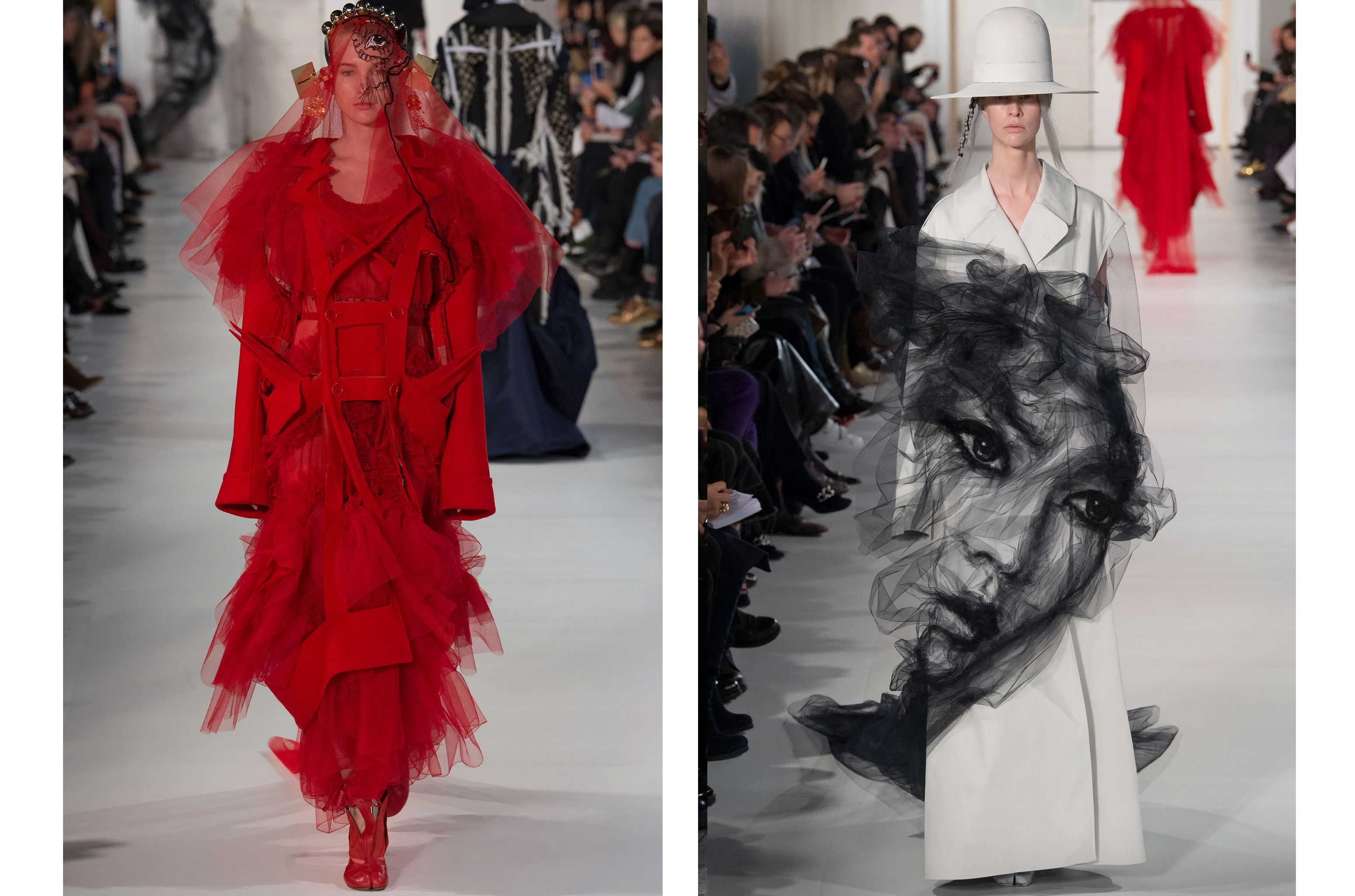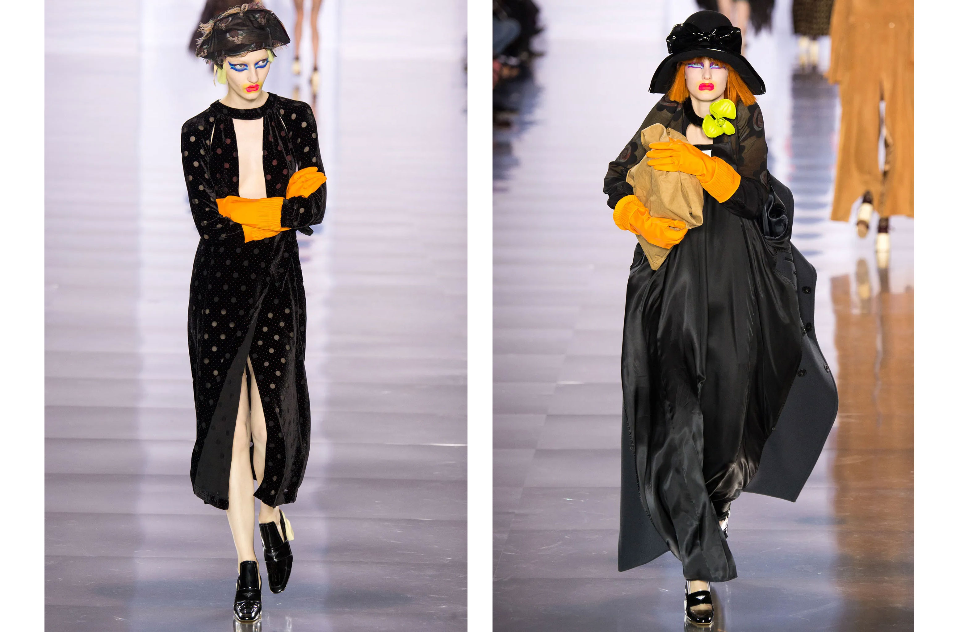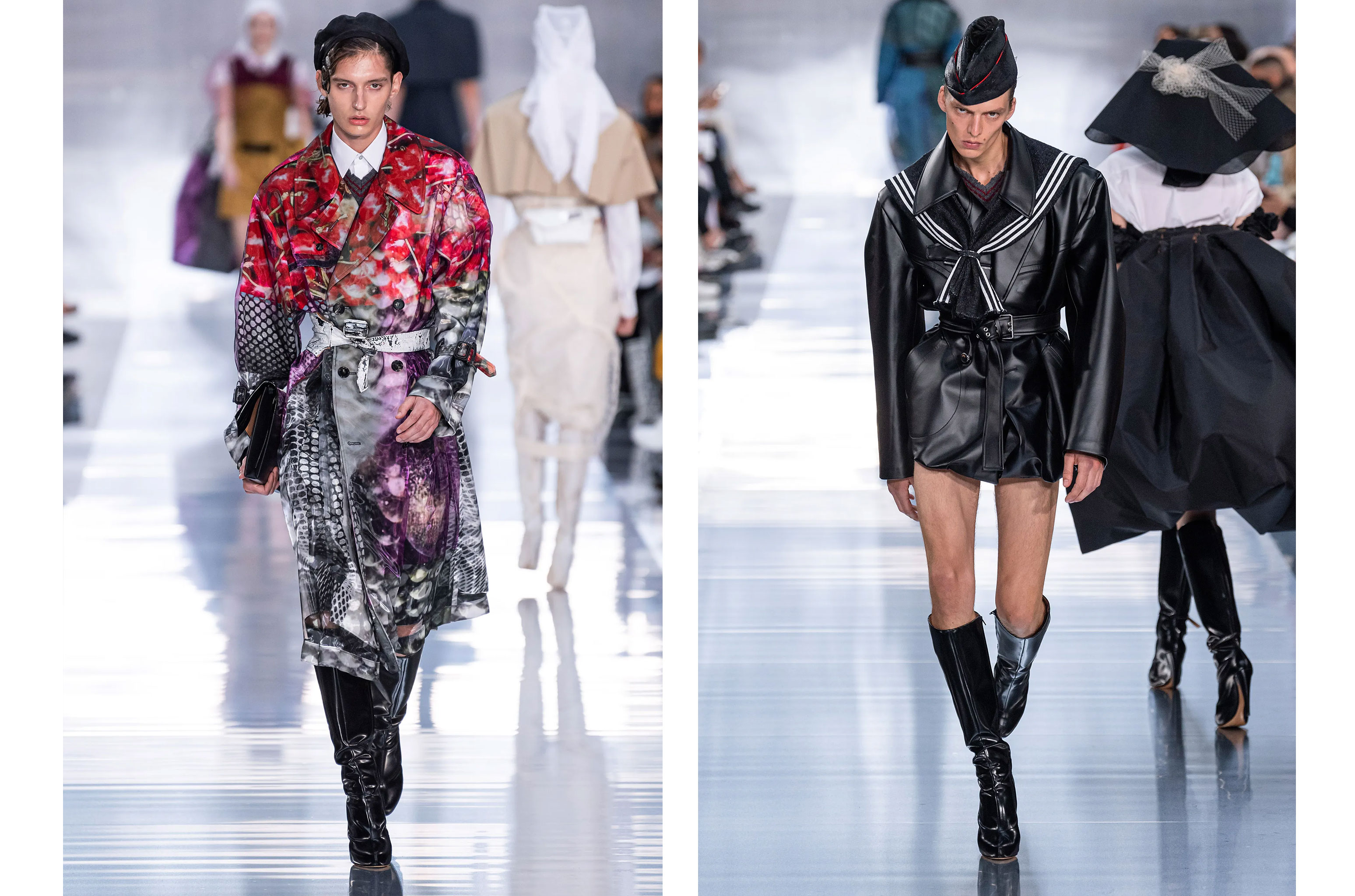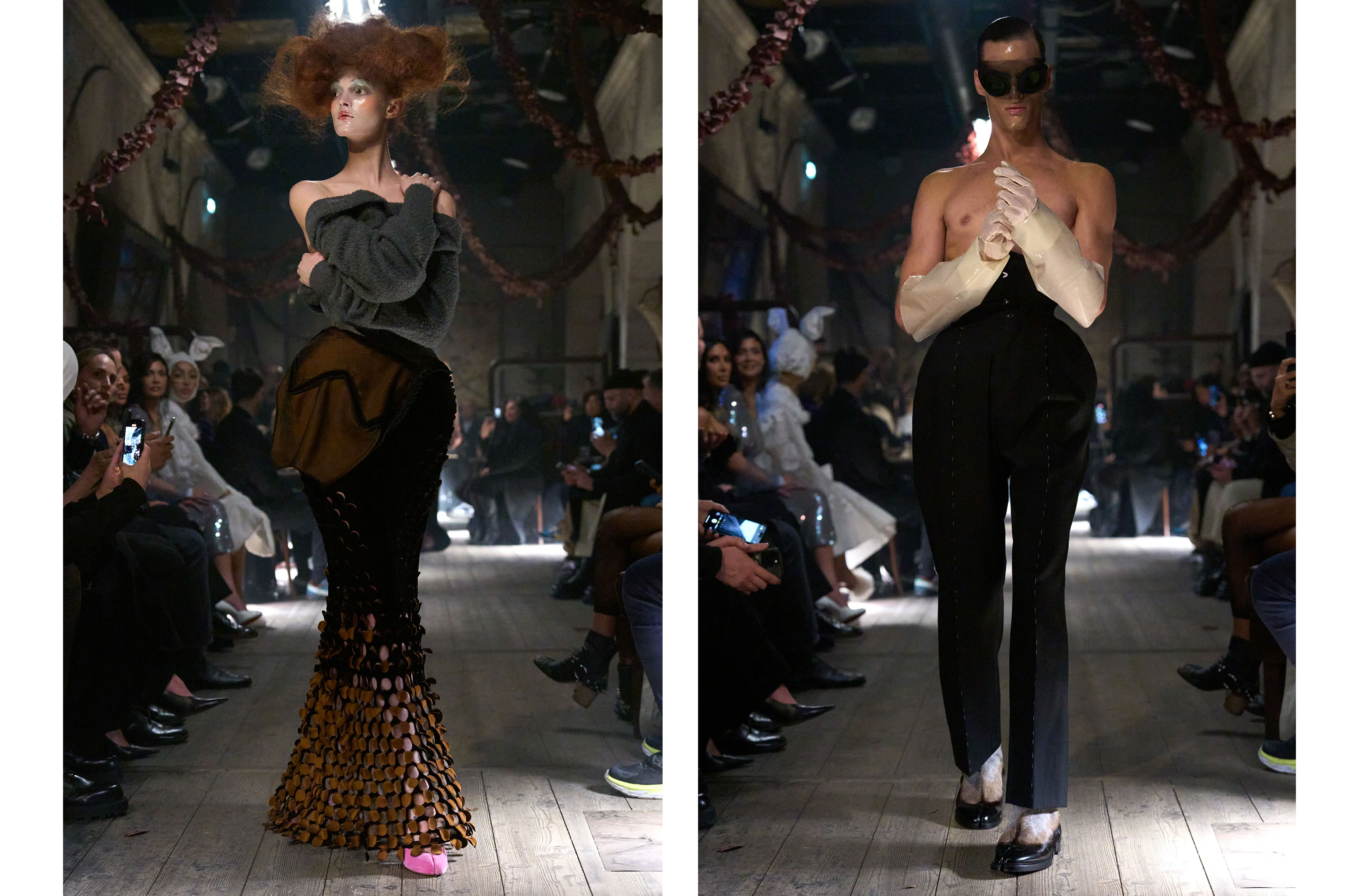 Фірмові деконструкція, переосмислення, апсайклінг матеріалів й мінімалізм, знайомі та характерні Maison Margiela, об’єдналися з провокативністю, театральністю Джона Гальяно. Кінець показу — повернення модного генія — викликав наелектризований ажіотаж, захоплення та сльози в гостів.