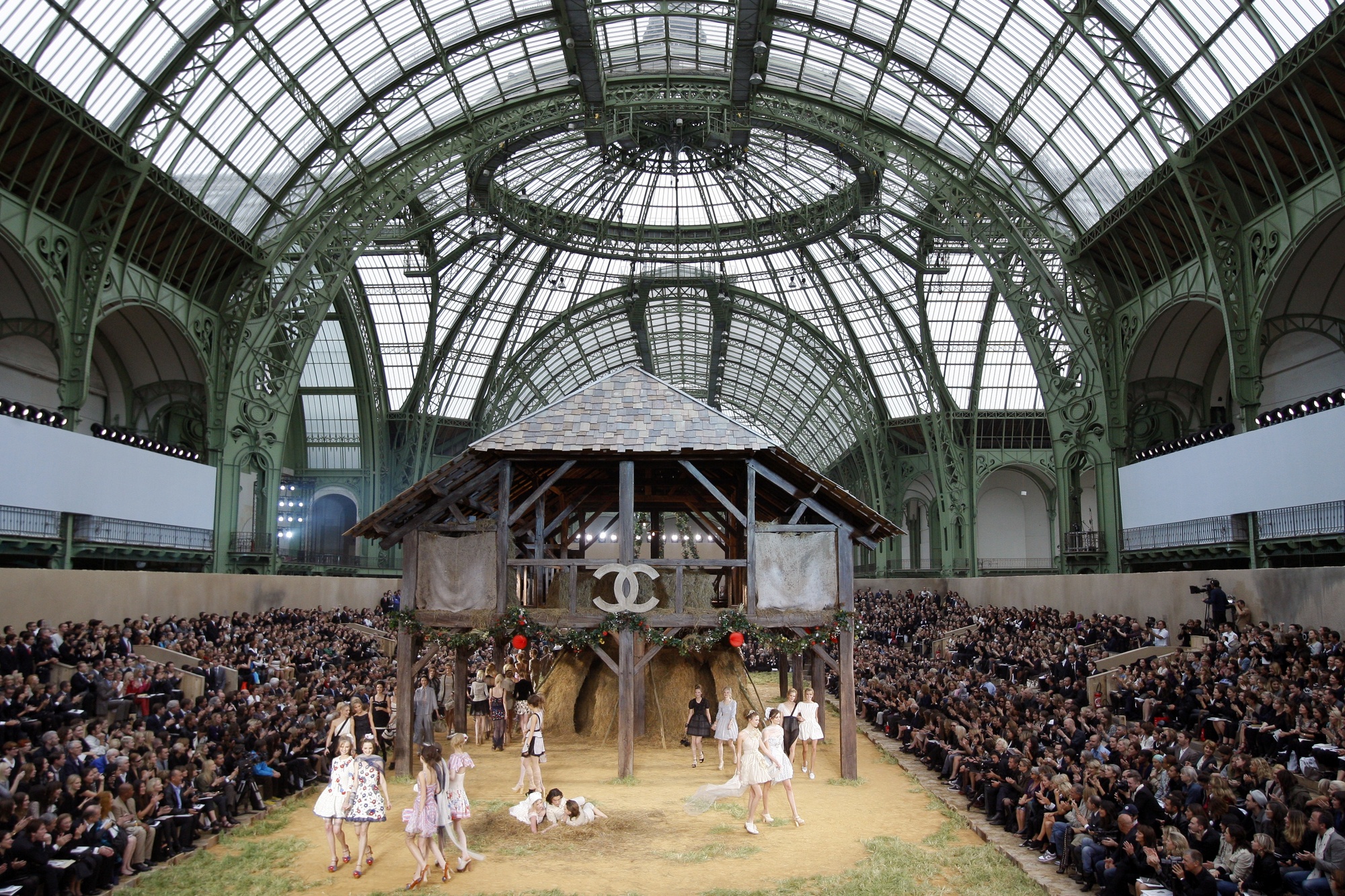 Карл Лагерфельд, широко відомий своєю сміливістю, перетворив архітектурну перлину Парижа на затишне поле. Посеред виставкової зали був розміщений дерев’яний будиночок з монограмою та логотипом модного Дому Chanel, а подіум шоу spring-summer — 2010 доповнювали рясне сіно та його стіжки.