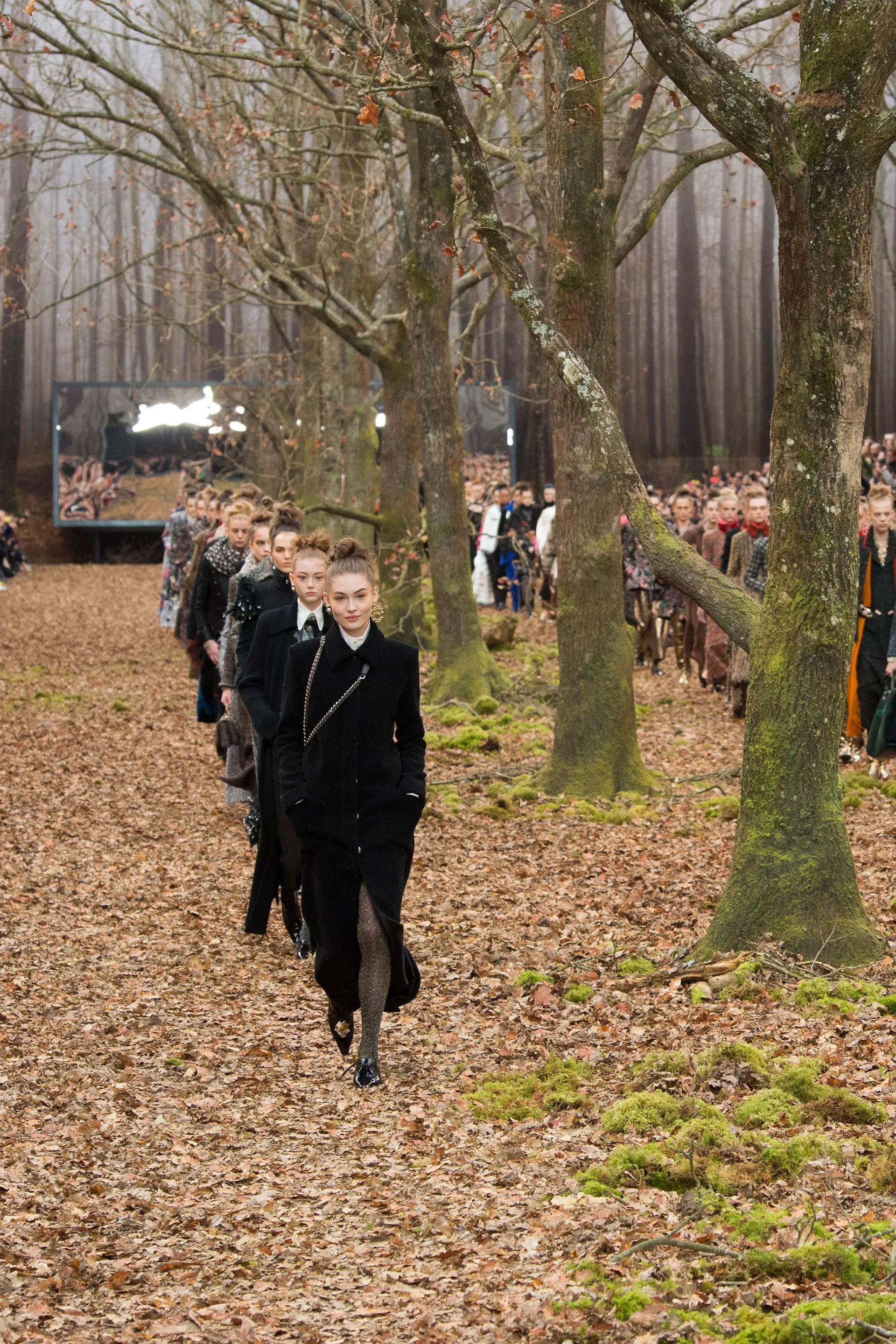 Дерева, які вже скинули листя, аби дозволити людям відчути їх хрускіт під ногами та осягнути настання осені: у шоу fall-winter — 2018 Карл Лагерфельд саме таким способом переніс глядачів у зачарований ліс Chanel. У стінах Великого палацу дизайнер віддав дань поваги сезону, представивши своє есе на тему «За що я люблю осінь».