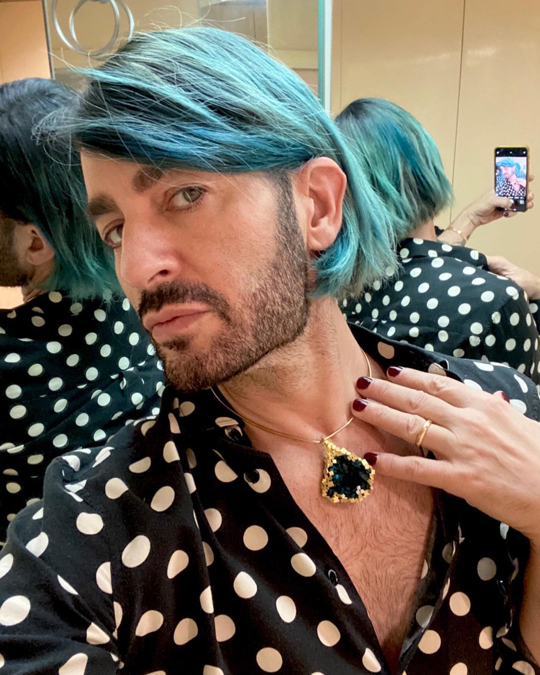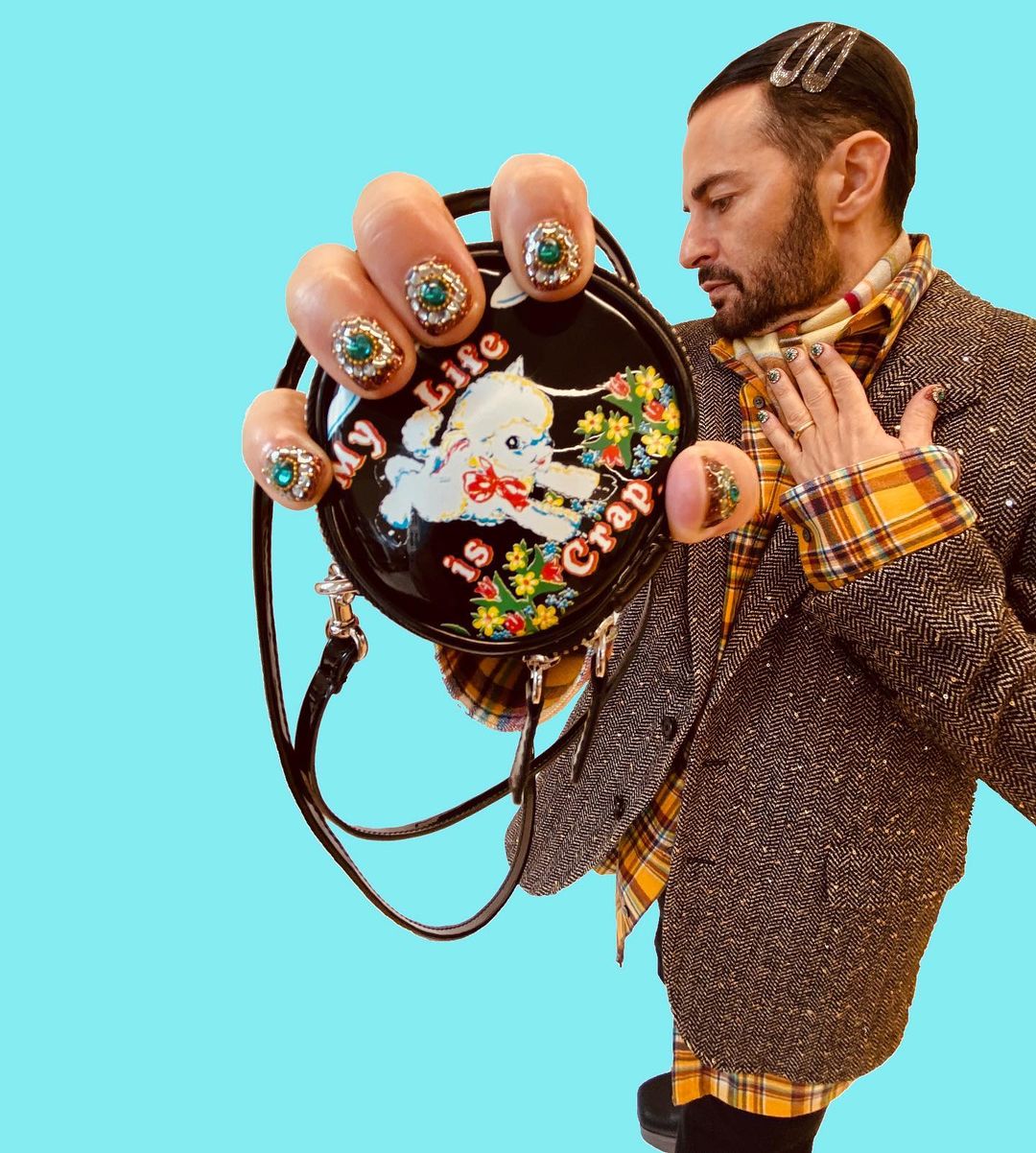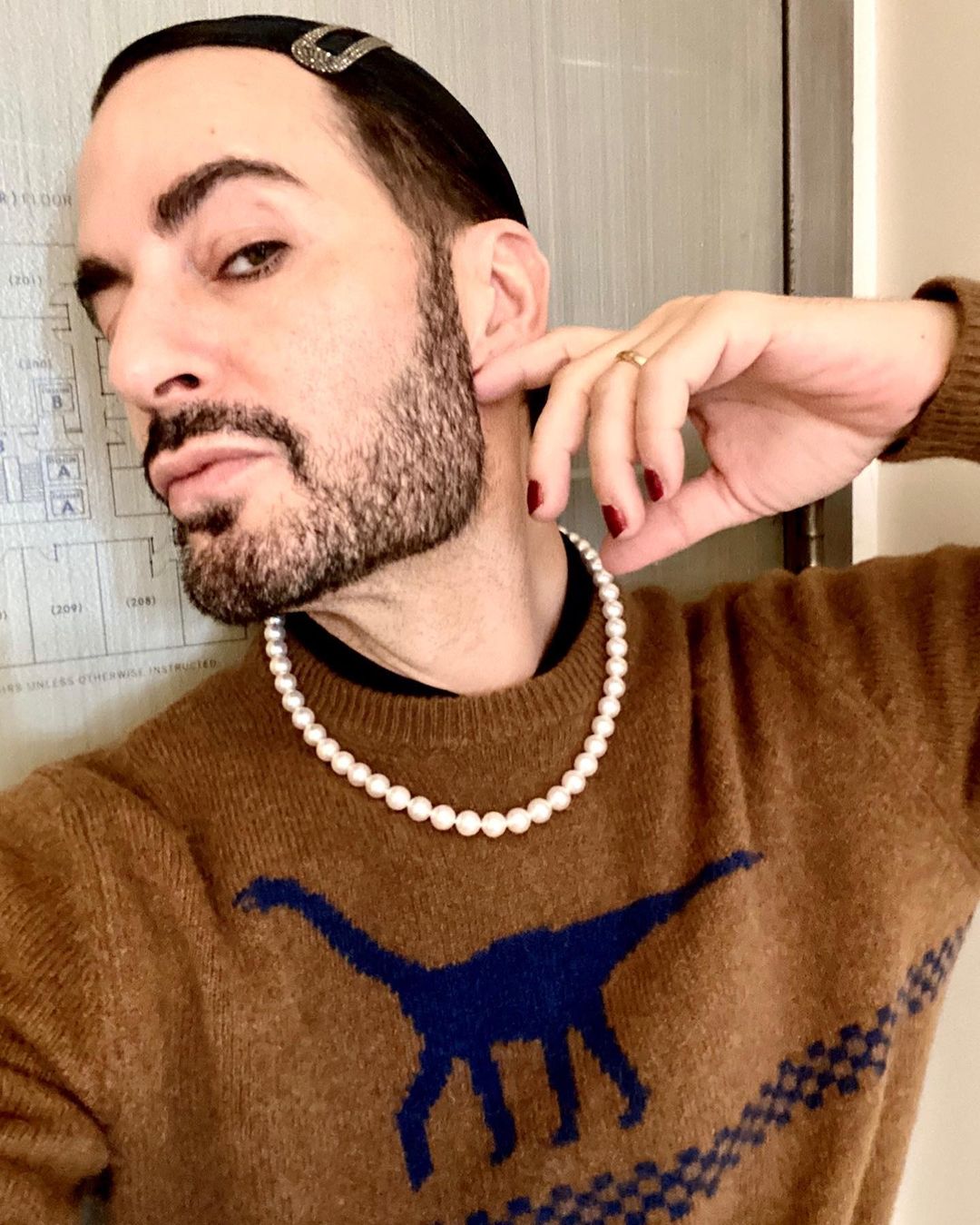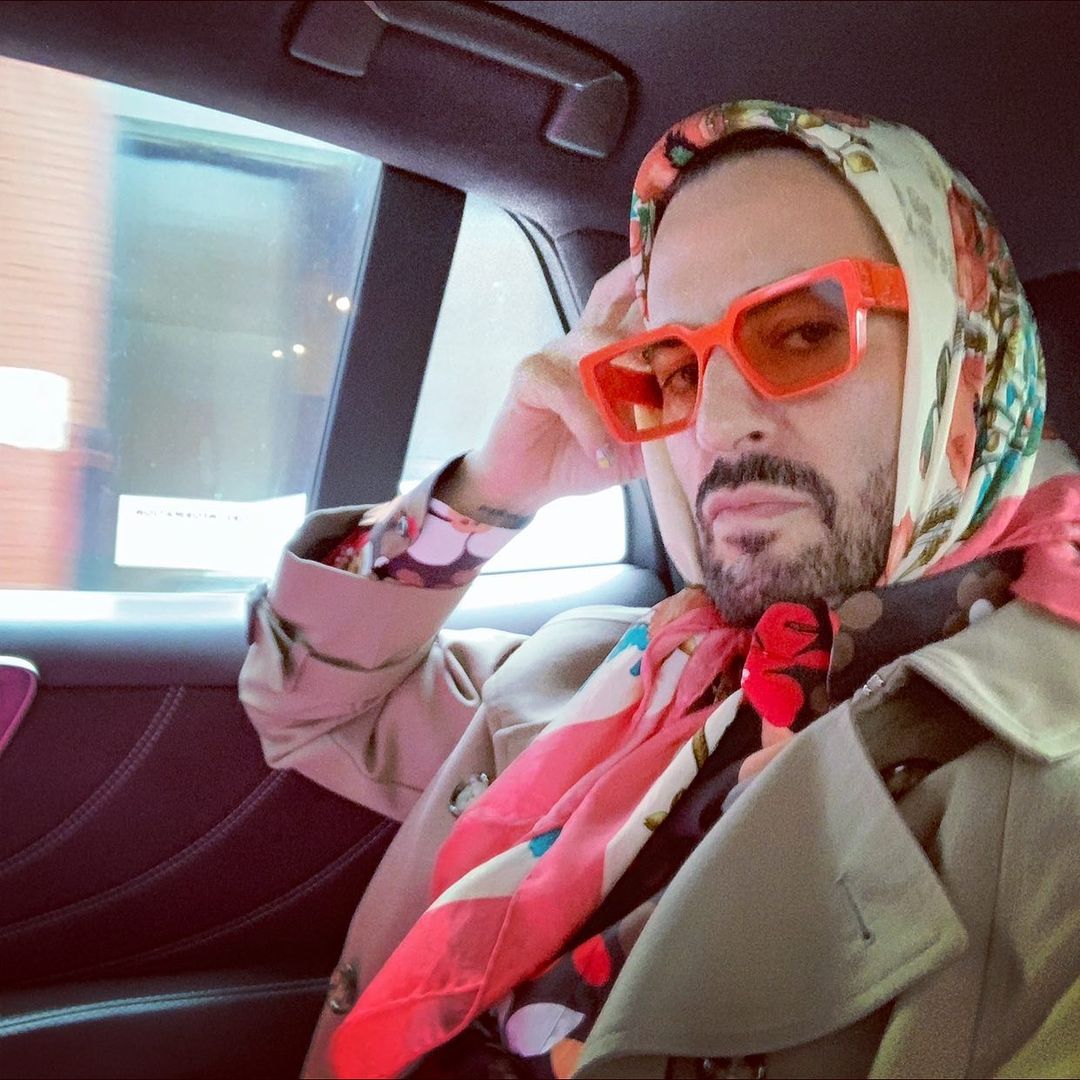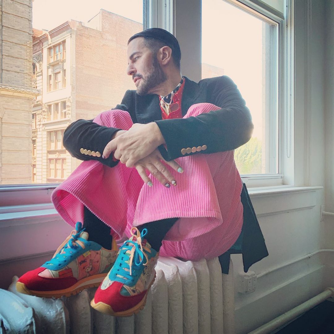 Джейкобс превратился в настоящую ультрагламурную икону. Волосы цвета лавандового крем-брюле, леопардовые шубы и пальто, сияющие костюмы в россыпях блесток, ярко-розовая помада и голубые тени — многим есть чему поучиться у Марка.