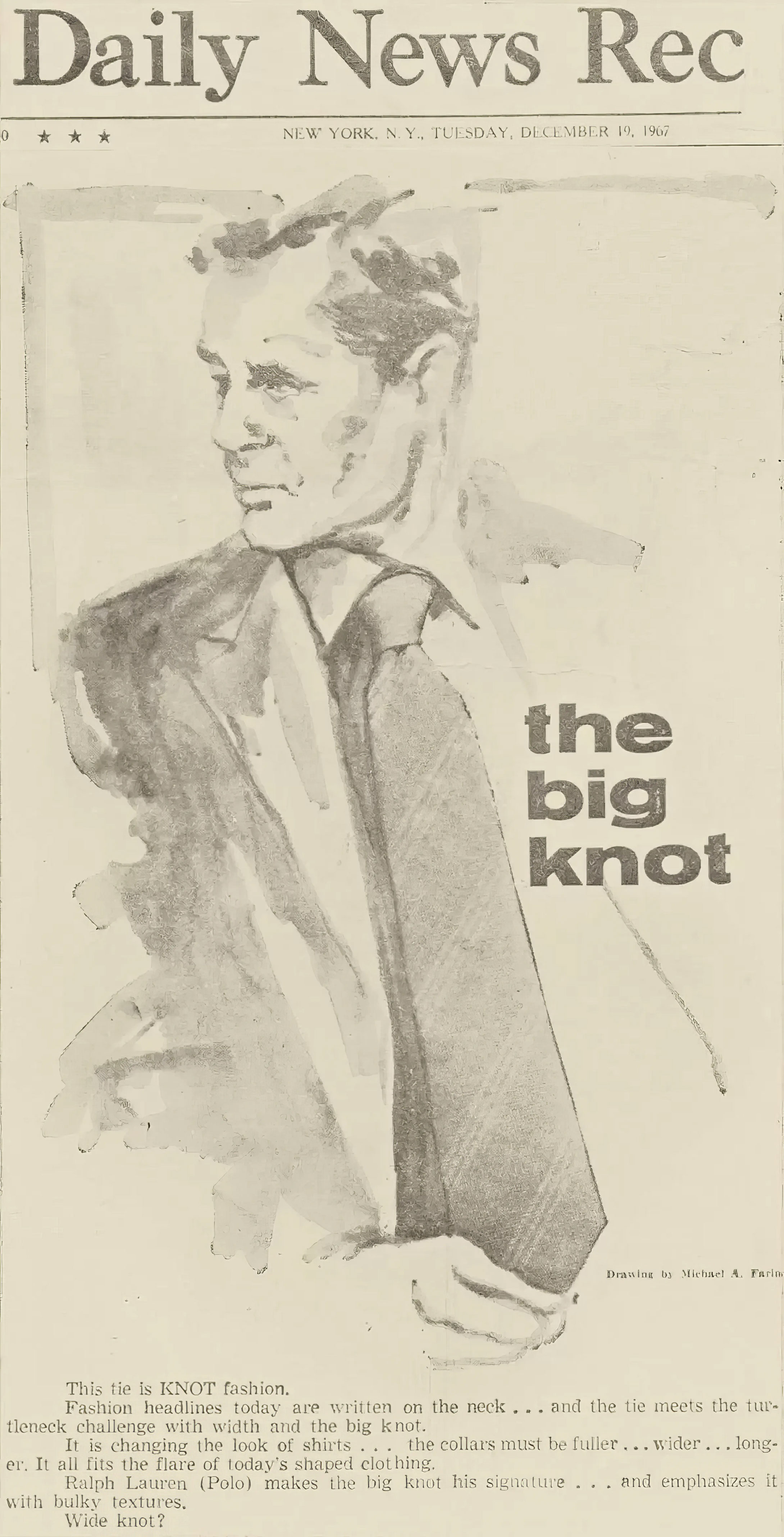 Ральф Лорен вірив у зміни. Для дизайнера вони почалися з широких краваток. Разом зі своєю дружиною Ріккі Ральф жив в однокімнатній квартирі в Бронксі, поруч з якою проходила залізнична станція. Накопичень — і кредиту в $ 50 000 — вистачало лише на оренду крихітного офісу, а краватки дизайнер зберігав у шухляді свого робочого стола. Ріккі пришивала бирки, а Ральф у старому бомбері та джинсах розвозив на таксі замовлення по магазинах одягу.