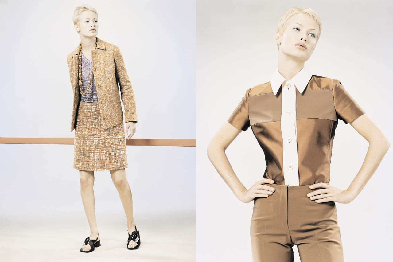 Миучча Прада одной из первых ввела в моду альтернативную эстетику Ugly Chic и обтягивающие гольфы из нейлона с молнией на горловине