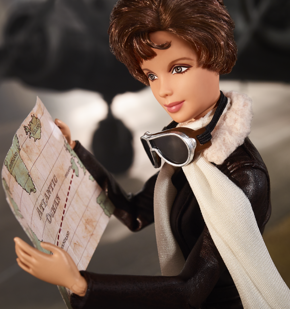 Американська авіаторка Амелія Ергарт — перша жінка-льотчиця, яка перелетіла Атлантичний океан у 1932. Своєю діяльністю та досягненнями вона демонструвала рівність чоловіків і жінок. Здобутки Ергарт увіковічили в серії «Жінки, що надихають». Лялька Амелії носить коричневу шкірянку й світло-бежеві штани військового крою, а також до набору входить карта перельоту через Атлантичний океан.