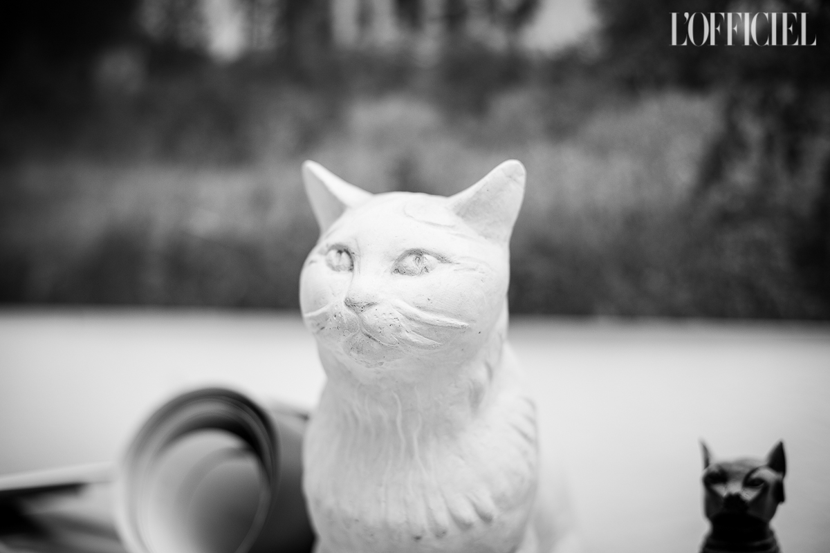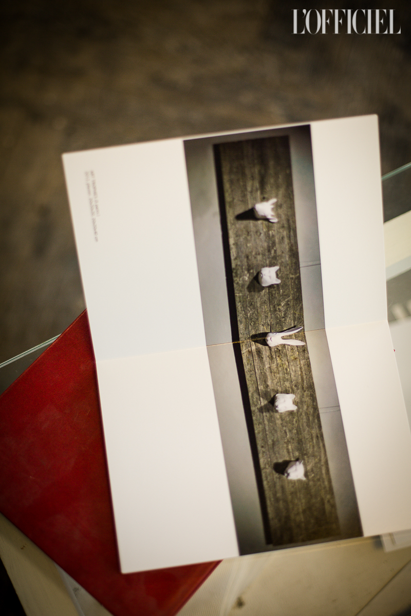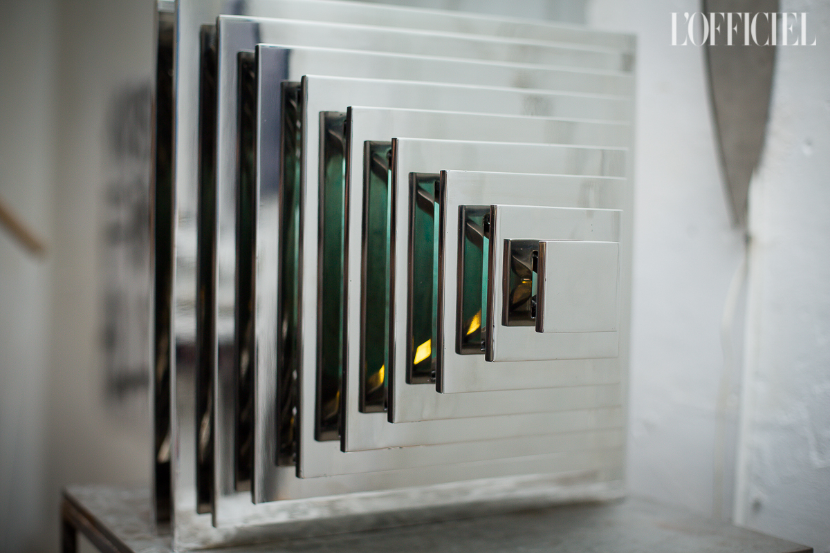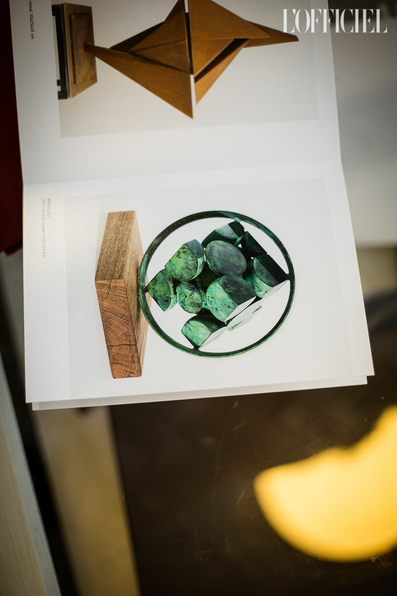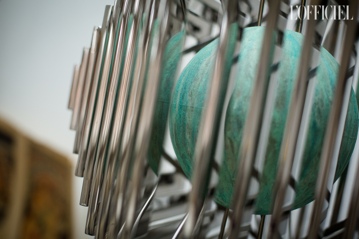 Тут тобі і полиця з книжками про мистецтво та дизайн, і загадкові автентичні сувеніри — невеличкі маски та ляльки зі Шрі-Ланки та Єгипту, — і дуже директивна, на погляд Золотарьова, металічна робота «Молекула», що зображає справжню молекулу матеріалу, до якого часто звертається скульптор, і навіть дуже дивні засушені Василем рослини — гладіолуси, які він щорічно саджає, а потім викапує та висушує. Такий собі вічний процес.