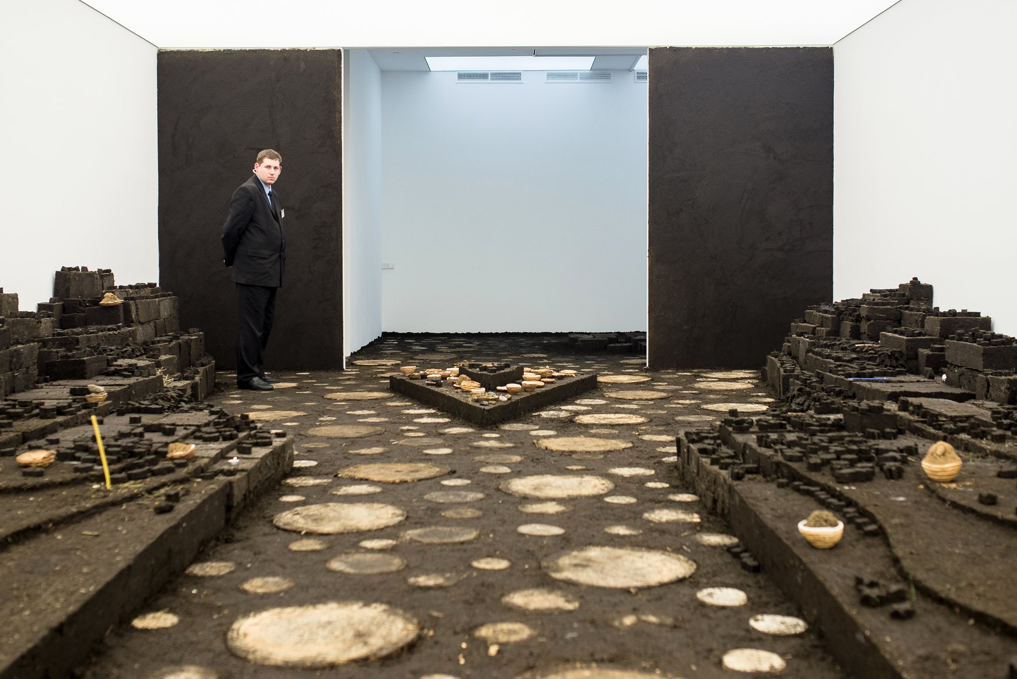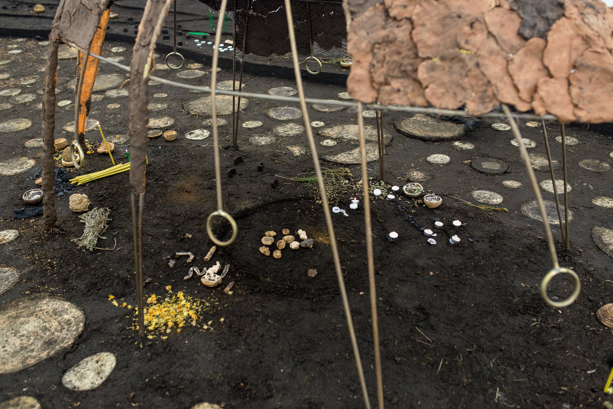 Ко всему прочему, половину второго этажа арт-центра заняла персональная выставка художницы из ЮАР Динео Сеше Бопапе, которая стала обладательницей главной премии 4-го международного конкурса Future Generation Art Prize 2017. Она представила масштабную инсталляцию из земли, которой плотно покрыты пол и стены, и серии рисунков, созданных специально для PinchukArtCentre. Новое монументальное произведение, сделанное из украинской земли, напоминает в некотором смысле древние духовные места, а также проводит параллели с традиционной иконографией плодородности. В работе земля находится в состоянии постоянной трансформации: человек внедряет архитектурные объекты в природный топографический ландшафт, вызывая потерю водных ресурсов и наконец превращая землю в неплодородное полотно. Дополнить эту идею Бопапе помогает игра с травами, кристаллами, глиной, золотой фольгой и специально собранными образцами земли, происходящими из дюжины духовных мест по всему миру.