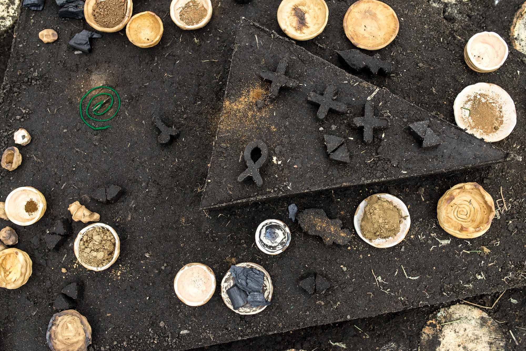 Украинская земля принимает в себя синергию знаков, верований, энергий и материалов, для которых в нашем языке не хватает слов. Земля твердая. Она создает фундамент и чувство принадлежности. Через образ земли художница обращается и к политической теме. Она определяет смысл государственности и идентичности, и в то же время она сохраняет внешнее спокойствие и нейтралитет. В работе же Бопапе земля превращается в реку. Она простирается от политики к духовной сфере (или от духовности к политике), возвращаясь и заново открывая утраченные традиции и глобальные маргинализированные системы верований. Едва заметным, но довольно важным моментом является запах немного сырой земли — он формирует атмосферу в пространстве экспозиции.