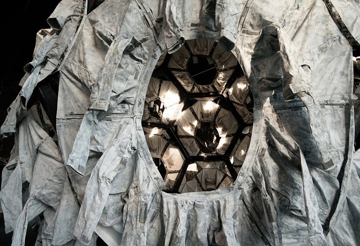 Робота являє собою три ідеально однакові сфери з металевим каркасом, обтягнуті матеріалом, що нагадує військову форму. Весь об'єкт митець покрив білою фарбою, стираючи характерність камуфляжу та перетворюючи його на символічне полотно. Сфери поєднують між собою довгі смуги з тієї ж тканини — як тяглість конфліктів, які зв'язують різні точки світу.