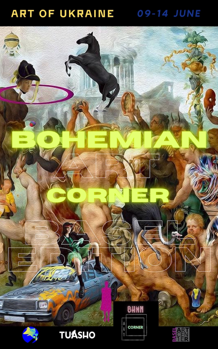 Bohemian Art Corner. Basel edition презентує мистецтво у форматі арт-вечірки – виставка молодого сучасного мистецтва з усіма атрибутами вечірки та спілкуванням з художниками й кураторами у неформальній атмосфері. Проєкт започатковано у 2020 році в Києві, українськими кураторками Анною Аветовою та Дар’єю Біленко. За ці роки було проведено 12 арт-вечірок. Кожне видання унікальне, стильне, насичене сучасним мистецтвом. Bohemian Art Corner — це завжди відкриття нових імен серед молодих художників, нові локації для кожної події, цікаві колаборації, богемна атмосфера. Кожного разу куратори працюють з контекстом локації й відбирають авторів, чиє мистецтво ідеально збігається з контекстом, продиктованим місцем.
