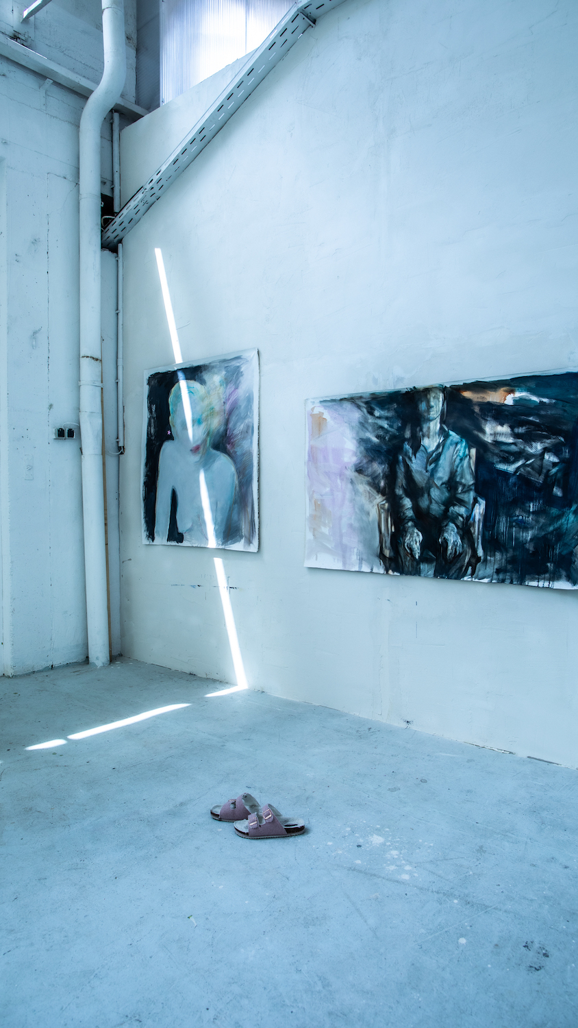 Ксенія: Закінчення немає. Тобто роботи з’являються і далі. Якщо є що сказати — продовжуєш малювати й після експозиції. Коли певну тему буде прожито до кінця — вона закінчиться серійно, й тоді можна говорити про якийсь катарсис. Для мене тілесність в картинах — спосіб розповісти про емоції й почуття. Тому що жести пальців чи пози тіла без слів розповідають про пережите. В нових роботах почала поміщати тіла у незручні пози, замикаючи їх в оточенні, де вони почуваються чужими. Такий хід композиції з’явився якось інтуїтивно, сам собою. Для мене важливо бути відвертою з глядачем. І говорити про пережите особисто. Мабуть, тому часто називаю свої роботи «станами». Адже кожна картина — певний прожитий стан.