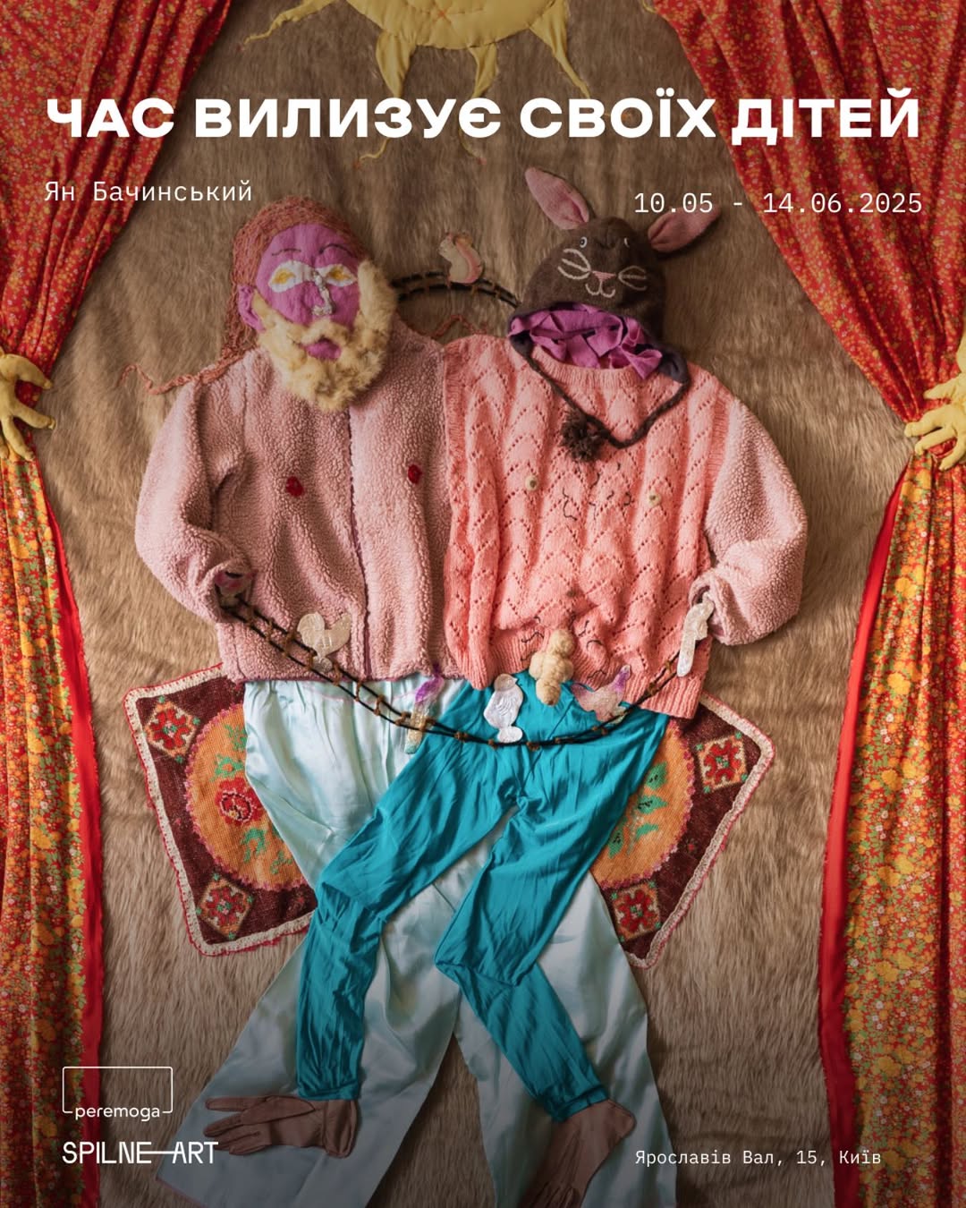 Персональна виставка художника, куратора та режисера Яна Бачинського — це історія про смуток, що перетворюється на радість, про речі, які повертаються до життя. Представлена на ній серія почалася як щоденник воєнного вигнання. Скульптури Ян Бачинський створив із фрагментів побуту, покинутих і знайдених речей, передусім із власного одягу. Повернувшись додому, митець перемкнув свою увагу на сам матеріал: це спроба оживити давнє, сучасне, особисте й чуже. Виставка розповість про докладені зусилля, аби зібрати світ, що розпадається, індивідуальний спротив і спостереження ентропії.