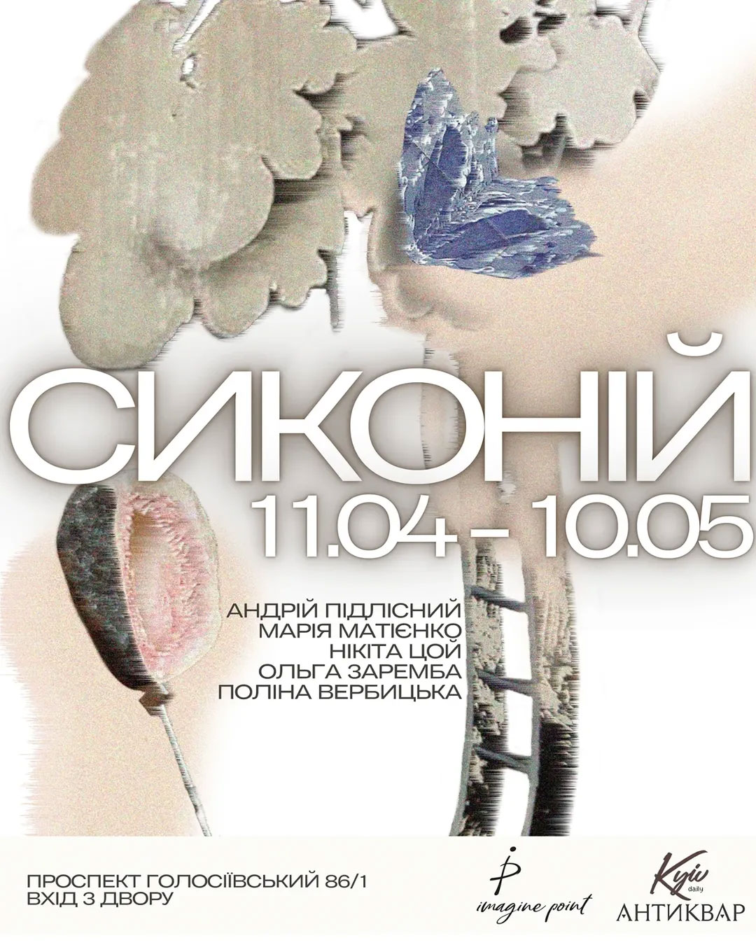 Сиконій — суцвіття інжиру, що стало ключовою метафорою групової виставки в «Imagine Point». Він репрезентує жорсткий, але необхідний союз. Входячи в чоловічий сиконій, оса відкладає яйця й гине, але народжуються її нащадки. Потрапляючи в жіноче суцвіття, вона лише запилить квіти, приречена на смерть без потомства. Цей фатальний древній союз став відправною точкою для мистецького осмислення тем симбіозу, приреченості й повторення: без нього не було б інжиру та ос. У виставці беруть участь Андрій Підлісний, Ольга Заремба, Нікіта Цой, Марія Матієнко, Поліна Вербицька.