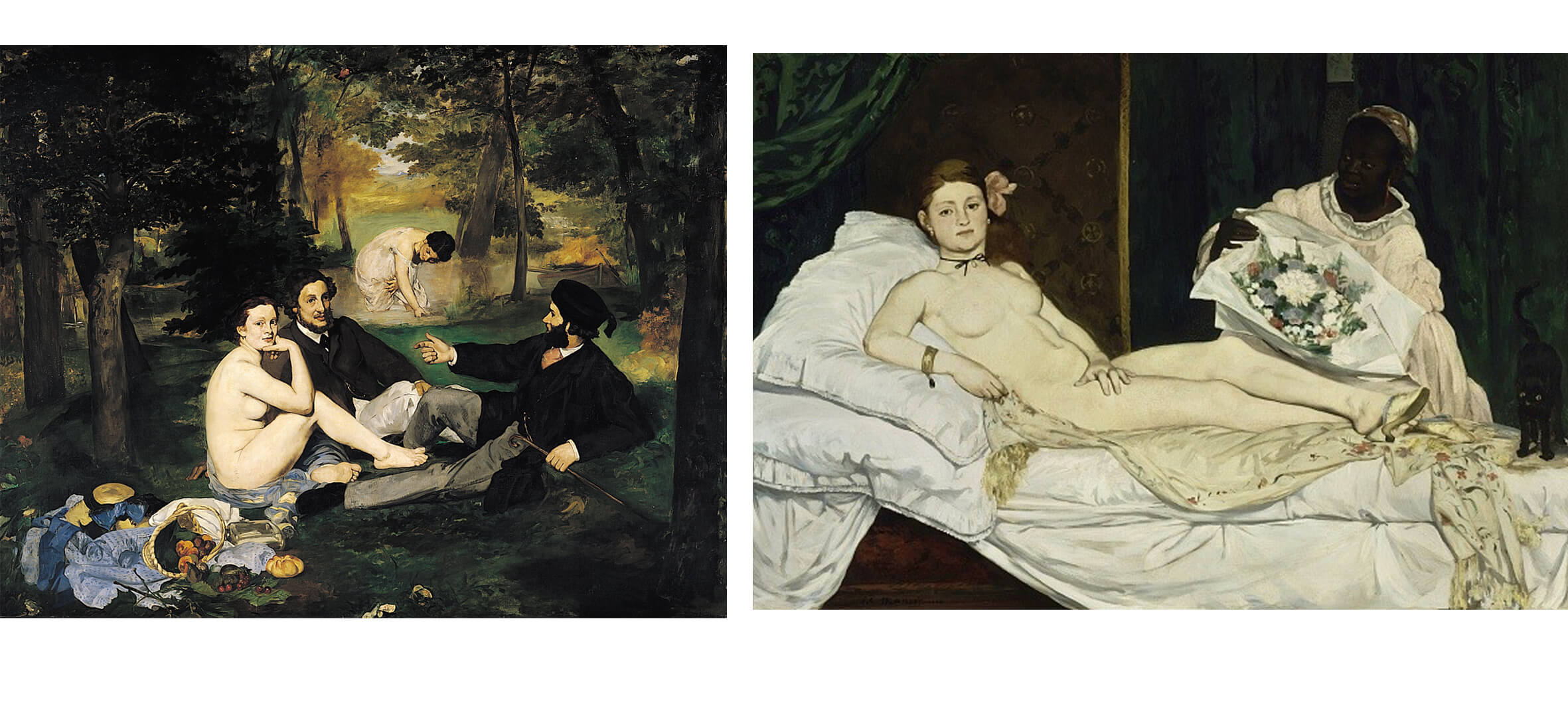Обнаженные тела были центральным объектом живописи еще со времен Возрождения. Правда, на них изображались сцены из Библии и античной мифологии, а не утехи простых смертных в этом и причина непринятия “Завтрака на траве” и “Олимпии” Мане, а позже творчества Густава Климта и Эгона Шиле.