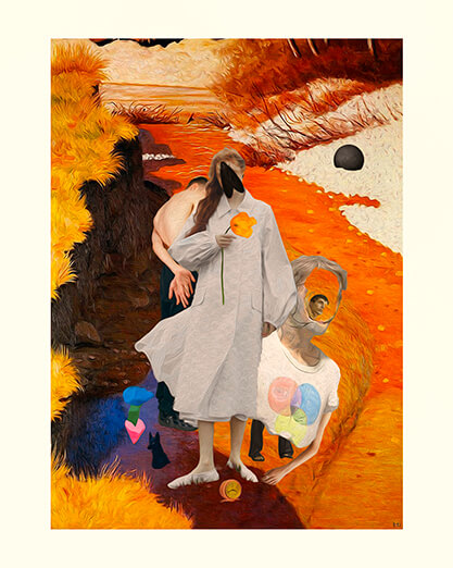 "В этой технике я работаю последние 3 года, — рассказывает Барболин. — Мой близкий друг поспорил, что я не смогу создавать 1 коллаж в день на протяжении года. Я выиграл пари, и к концу года в моем портфолио было 365 готовых работ. Благодаря постоянной практике я освоил принцип и нашел свой авторский стиль. Конечно, изначально коллажи очень отличались от тех, которые вы видите сейчас. (Смеется.) Я брал ватман, журналы и ножницы – и искал форму методом проб и ошибок. Просто вырезал и клеил аналоговые коллажи. Главной проблемой было выбрать, что в их основе: хаотично налепленные изображения или моя внутренняя рефлексия. В первую очередь я всегда думаю о фоне, а затем уже наполняю "пространство" смыслом. Фон задает вектор сюжету".