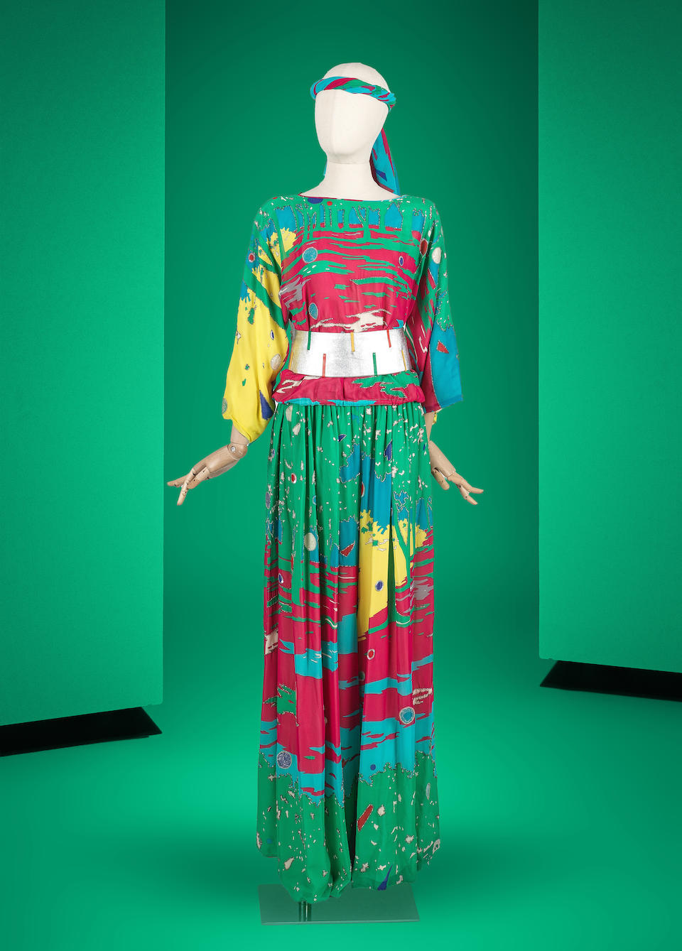 Присутня в добірці аукціонного дому Bonhams і колекція spring-summer — 1982, обличчям якої згодом стала Лінда Євангеліста. Комбінація з топу та довгої спідниці створена з різнокольорової тафти, делікатно розшитої перлинами та лелітками.