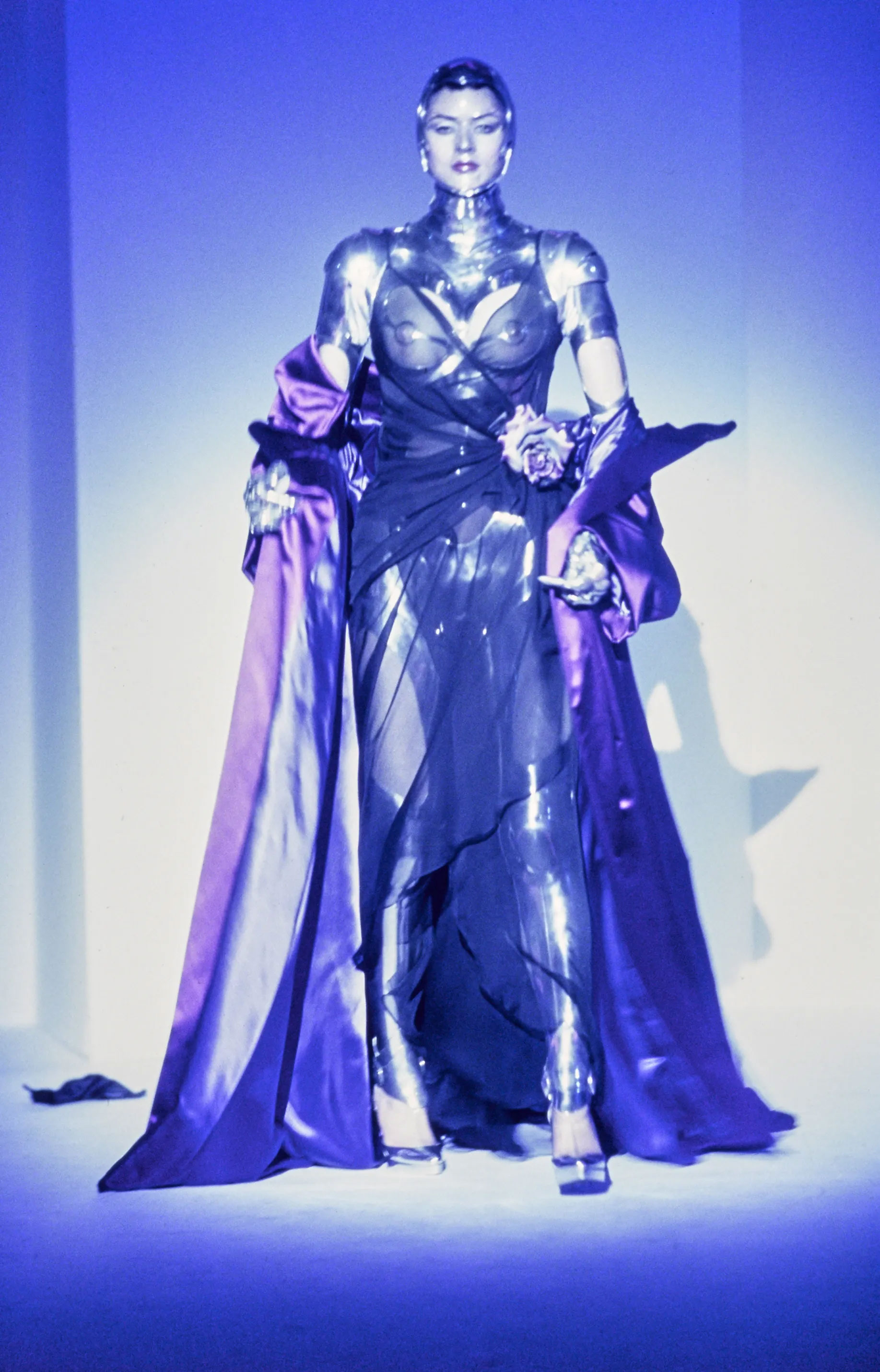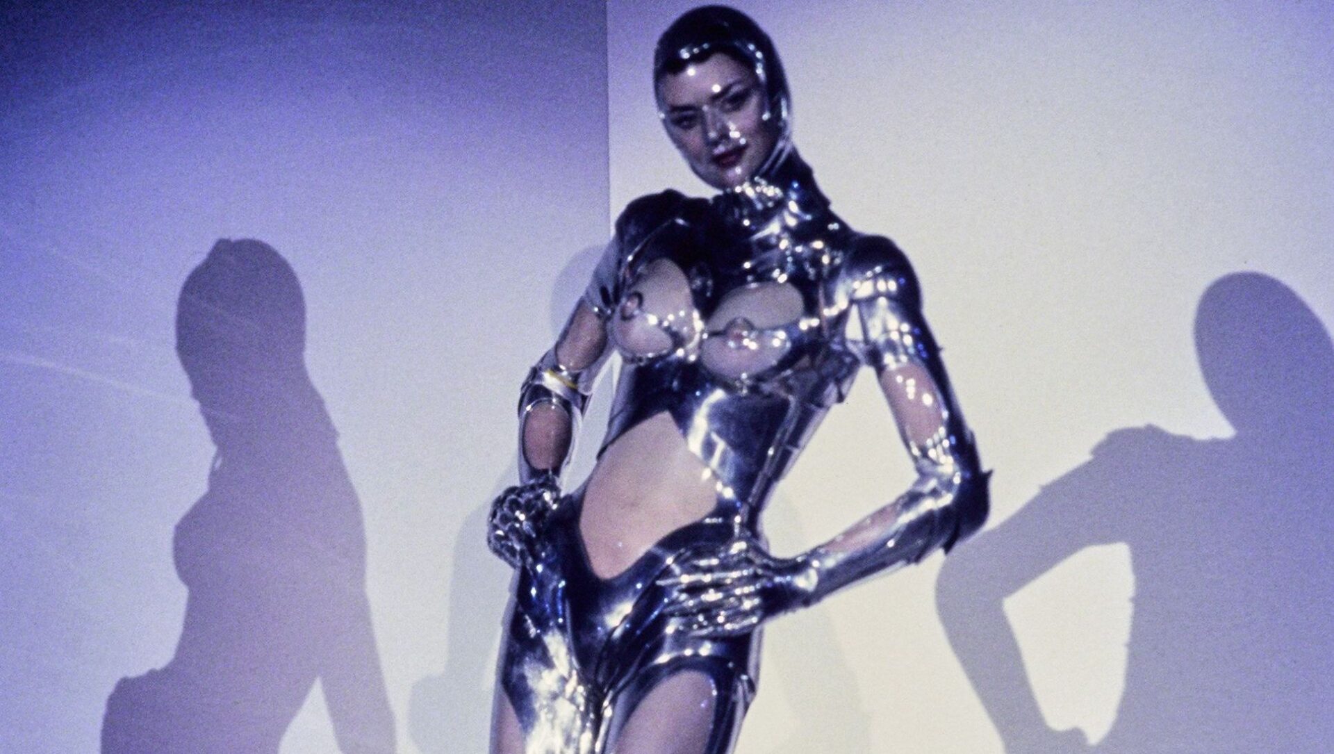 Осінньо-зимова колекція Thierry Mugler 1995 року виокремлювалася винятковим футуристичним поглядом дизайнера та перформансом, створеним навколо одягу. Показ навіть завершився живим концертом співака Джеймса Брауна, чиї фірмові крики були вкраплені в динамічний саундтрек, який миттєво переходив від хаосу до класики. Найбільш знаковим був дебют костюма Cyborg. До цього він роками експериментував з металевими нагрудниками та футуристичними фантазіями, черпаючи натхнення у таких художників, як Хадзіме Сораяма.
