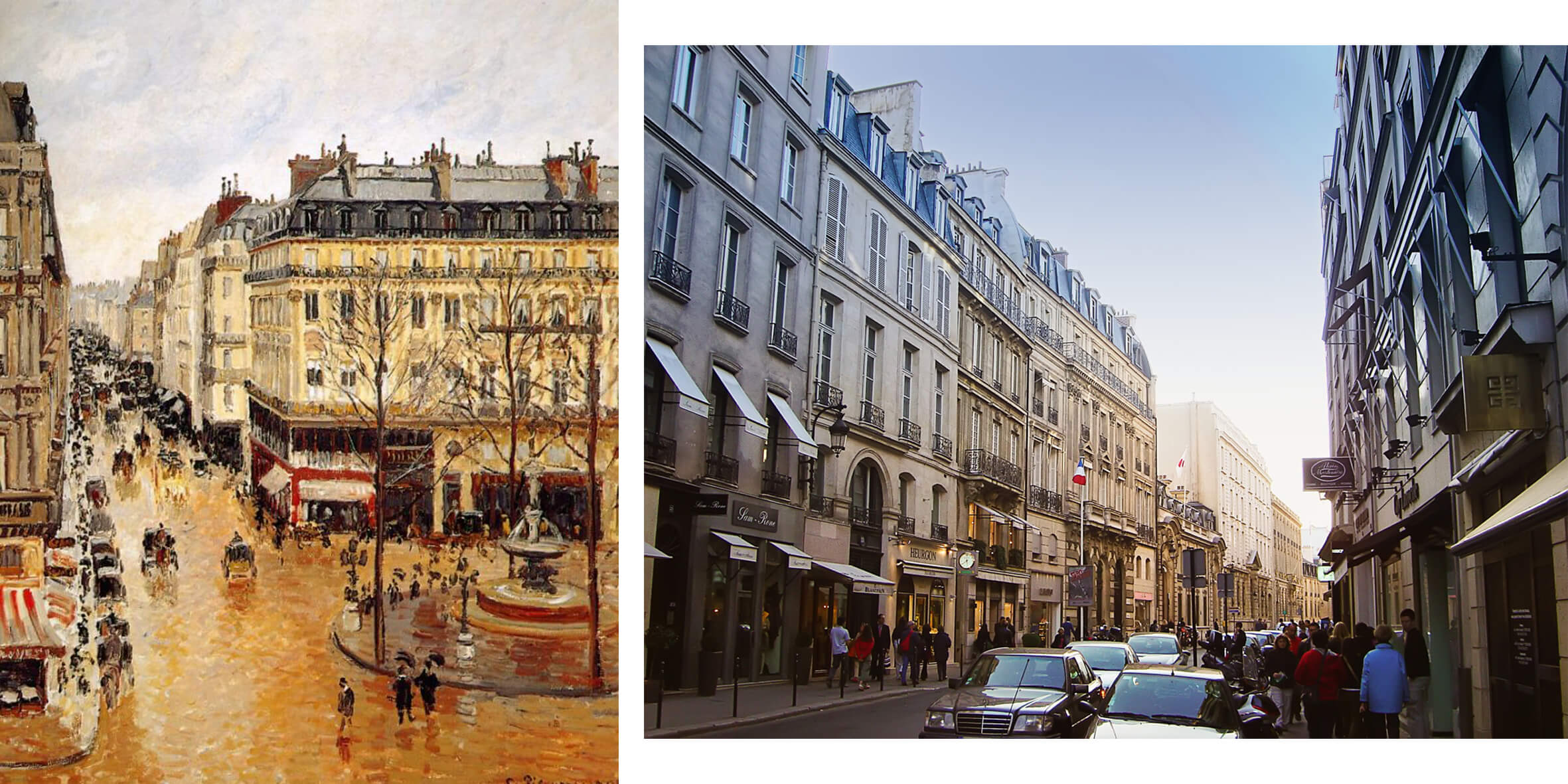 “Улица Сент-Оноре. Полдень. Дождь”, конец XIX века. Сегодня здесь расположены бутики модных домов, антикварные магазины и художественные галереи, а еще Елисейский дворец — главная резиденция президента. Здесь же находятся главные государственные учреждения.