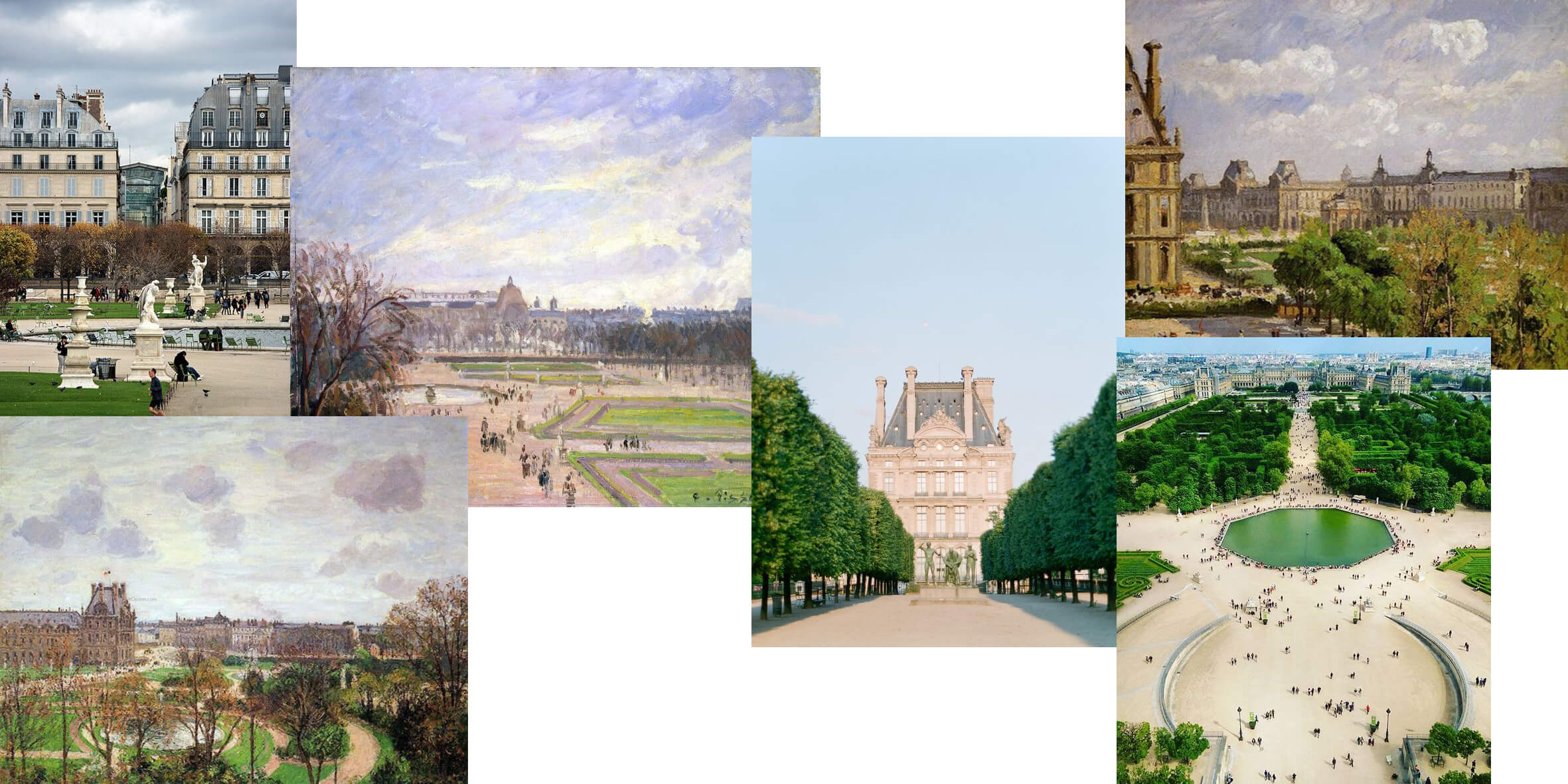 “Сады Тюильри”, 1900-е. Еще в 15 веке на месте сада была свалка и добыча глины, из которой делали черепицу (с французского tuile переводится как "черепица"). Екатерина Медичи начала строить здесь парк и дворец в 1564 году, а после этого границы Парижа расширили за стены луврской крепости. Дворец сожгли во времена Парижской коммуны в 1871 году и с тех пор не восстанавливали.