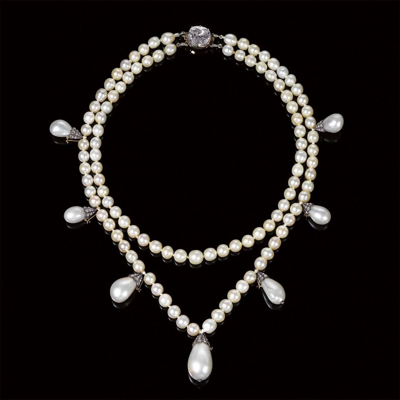 На одному з найвідоміших портретів Жозефіна Бонапарт зображена у комплексі прикрас з перлів грушоподібної форми. Саме це ограновування було улюбленим у імператриці. Сережки виготовлені зі срібла та золота, інкрустовані діамантами та перлами.