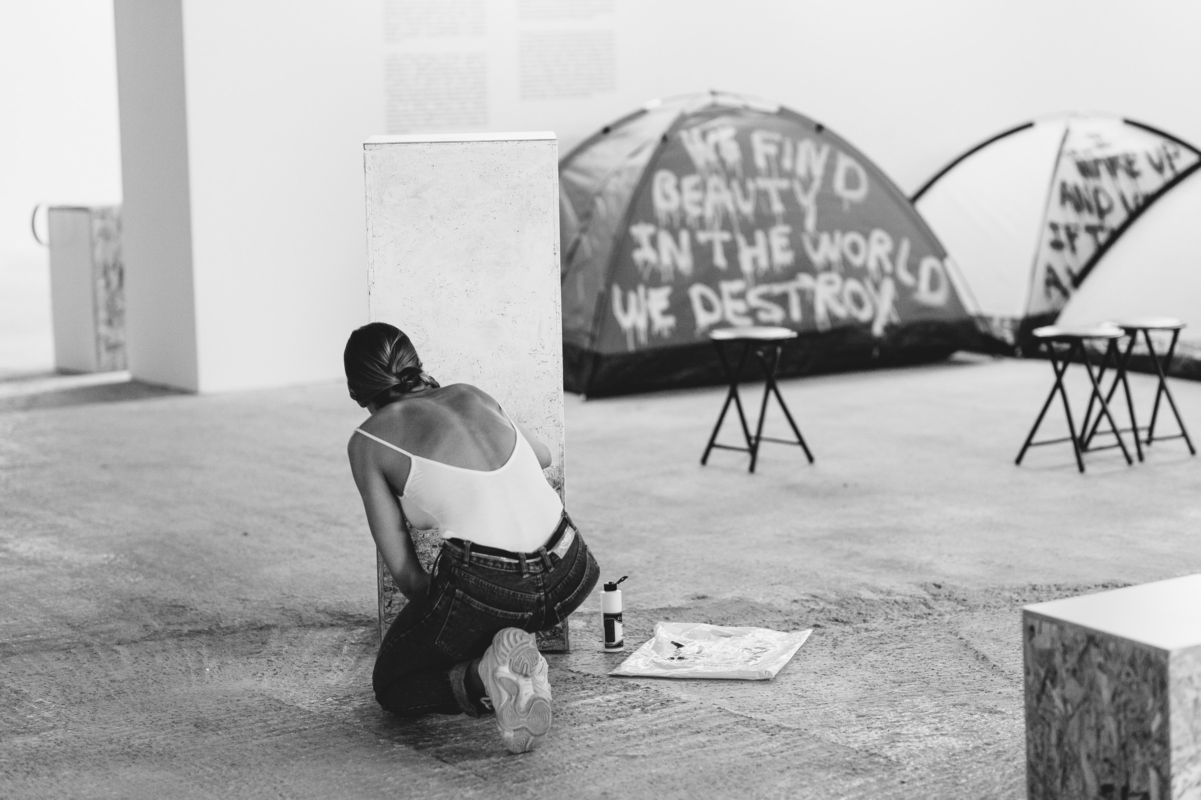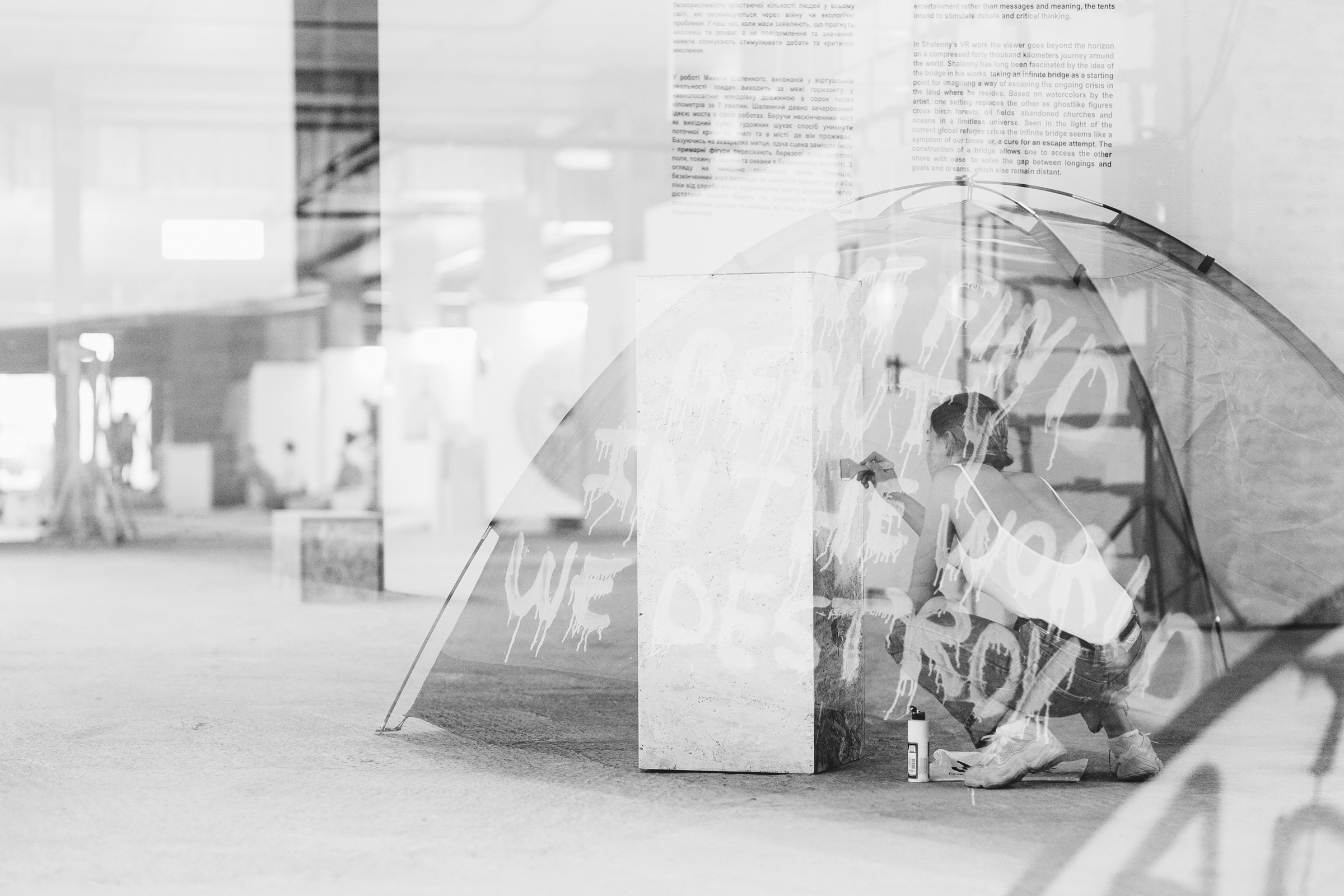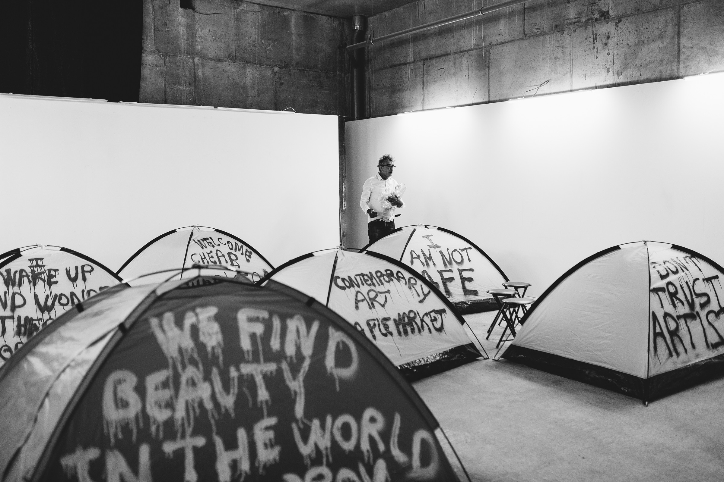 Специально для L'Officiel фотограф Тимур Безлюдный отправился на монтаж выставки накануне старта: ему удалось запечатлеть, как команда фестиваля, галеристы и художники развешивали на стенах полотна, устанавливали части инсталляций и расписывали красками стены и палатки. В общем, если вам когда-нибудь хотелось узнать, как создаются выставки, оформляются галереи, и посмотреть на искусство оформлять искусство – вы открыли правильный материал.