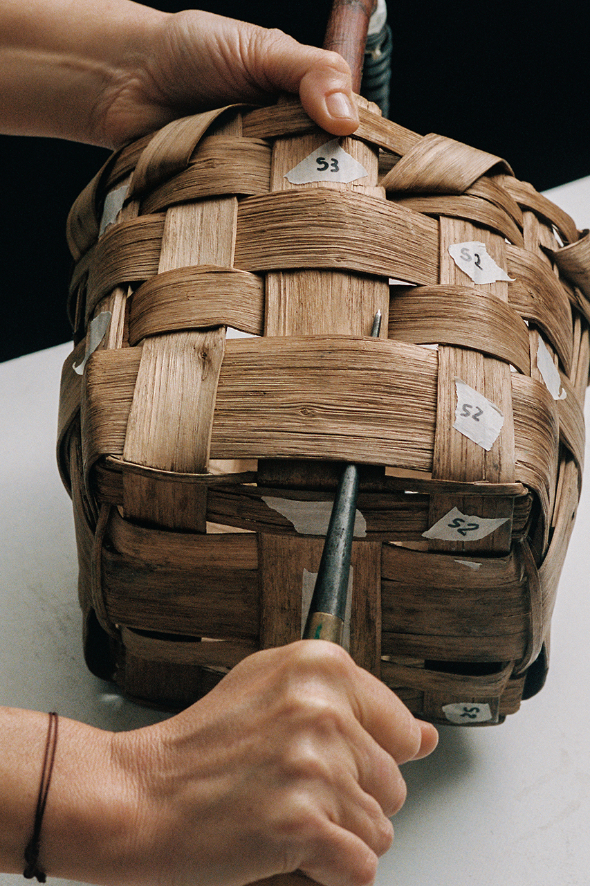 Усі відреставровані корзини було виготовлено з різних матеріалів, і кожна з них була різного ступеню пошкодження. Так, наприклад, під час відновлення однієї з корзин ремісники використали технологію "короза", яку було вигадано ще у V столітті на території Галли (нині Франція, Бельгія, частина Швейцарії, Німеччина та Північна Італія).