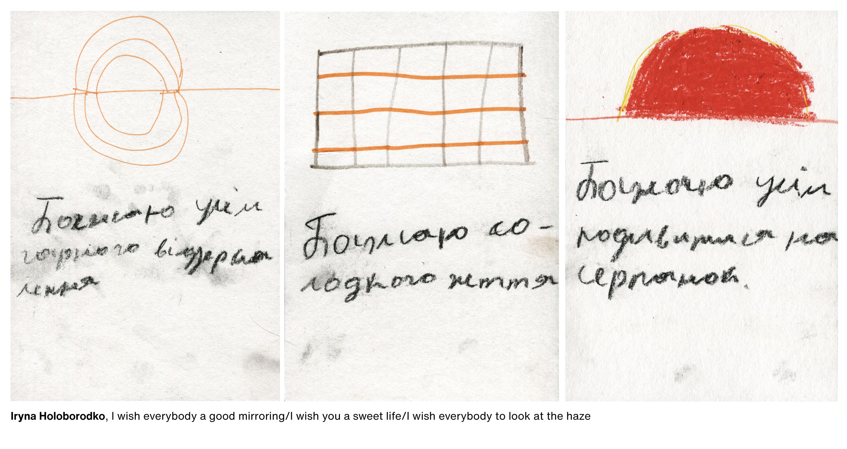 М.: Так ми підтримуємо тенденцію мистецького світу, що полягає в об’єднаності. Ми йдемо шляхом спільної роботи. Ми не нівелюємо роль художника, а наголошуємо на цінності співавторства. Це дозволяє голосам людей проявлятися, звучати так само голосно, як і авторському. Наприклад, одна з робіт у павільйоні – проєкт «Щирі вітання», створений Катею Бучацькою у співпраці з нейровідмінними художниками. З 2016-го вона співпрацює з інклюзивною лабораторією «Майстерня можливостей», зокрема, її група продовжувала роботу в лютому 2022-го, всі щодня зустрічалися у зумі. Ці зустрічі були порятунком для учасників і стали поштовхом до проєкту «Щирі вітання». Катя розповідає, що саме в критичний момент вторгнення звернула увагу на те, що мова навколо розпадається, звичні явища сприймаються по-іншому, і мова тих, хто в епіцентрі подій, змінюється. Її проєкт зосередиться на нових властивостях мови опуклювати звичне. Дуже важливо, що цей проєкт втілюється у співавторстві, бо саме так зародилася його ідея, до того ж саме в полілозі відбувається «промацування» розломів мови. Тож проєкт є перш за все колективним і багатоголосим висловлюванням.