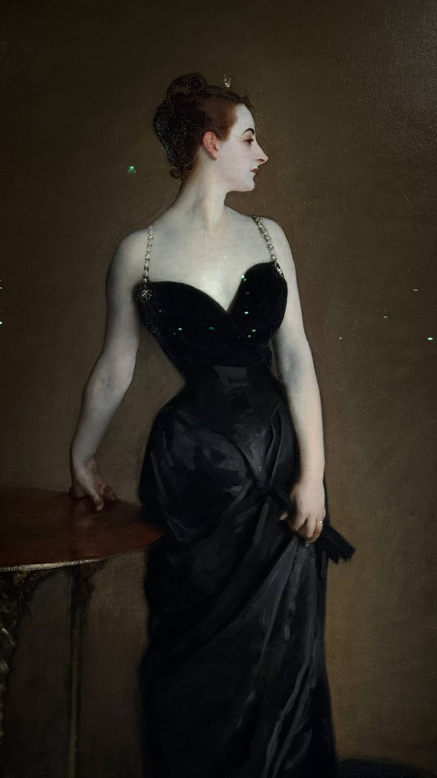 Особливе місце в експозиції займають такі шедеври, як «Доктор Поцці у себе вдома», «Дочки Едварда Дарлі Боіта» та, звісно, «Мадам Х» — портрет Віржинії Ґотрьо, який у 1884 році спричинив справжній скандал на Паризькому салоні. Картина, що сьогодні вважається іконою модерного портрета, тоді викликала хвилю обурення через «надмірну зухвалість» образу. На портреті її поза та костюм сприймалися як занадто відверті: одна з бретелей сукні спускалася з плеча. Суспільство 1880-х вважало це провокаційним і аморальним, особливо для жінки з аристократичного кола. Саме вона стала переломним моментом у паризькій кар’єрі Сарджента.