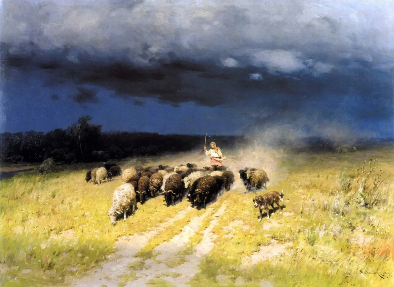 У 1893 році за сприяння Іллі Рєпіна Микола Пимоненко приєднався до Товариства пересувних художніх виставок, реалістів, що зверталися у своїй творчості до тем народного життя, природи. Це був і провідний лейтмотив доробку митця, котрий змальовував сцени побутового життя українців, їхні традиції, відштовхуючись від реалій свого сьогодення та походження. Його Україна — лірична та пасторальна із зустрічами закоханих в ошатному національному строї, зображенням збирання жнив, Великодня й колядок, а також міського середовища.