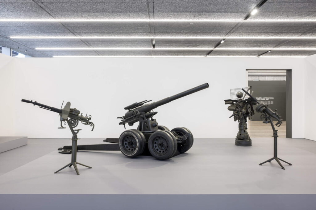 Вплив війни на світогляд художника проявляється в «збройній серії». Збираючи матеріали по часткам, Паскалі відтворював важку зброю. Завдяки деталізації предметів, пофарбованих в оливково-зелений колір, у руках Піно артилерія перетворювалася на велетенські іграшки, які не можуть ані стріляти, ані вбивати.