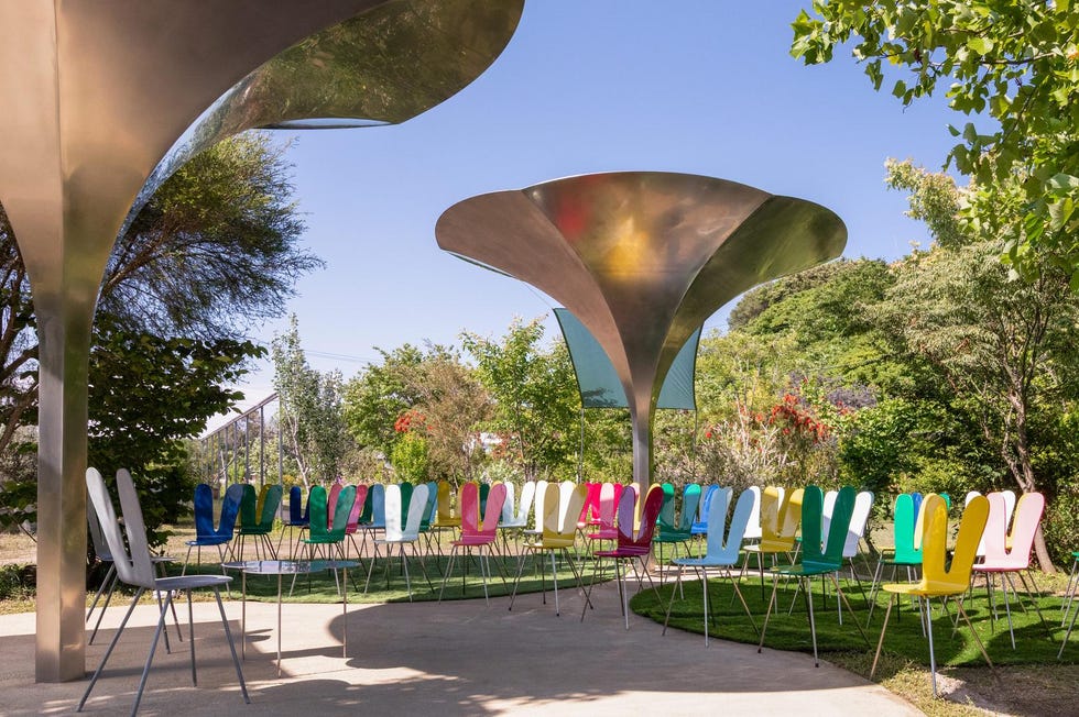 Нову частину Prada Mode курує співзасновниця одного з найвідоміших архітектурних бюро SANAA. Для павільйону модного Дому Кадзуйо Седзіма використала властиві в своїй роботі чисті та модерністські лінії, які втілилися в об’ємній металевій споруді для головної будівлі, декоративних вуличних меблях з дерева та кроликах, розташованих по периметру парку міста Осака.